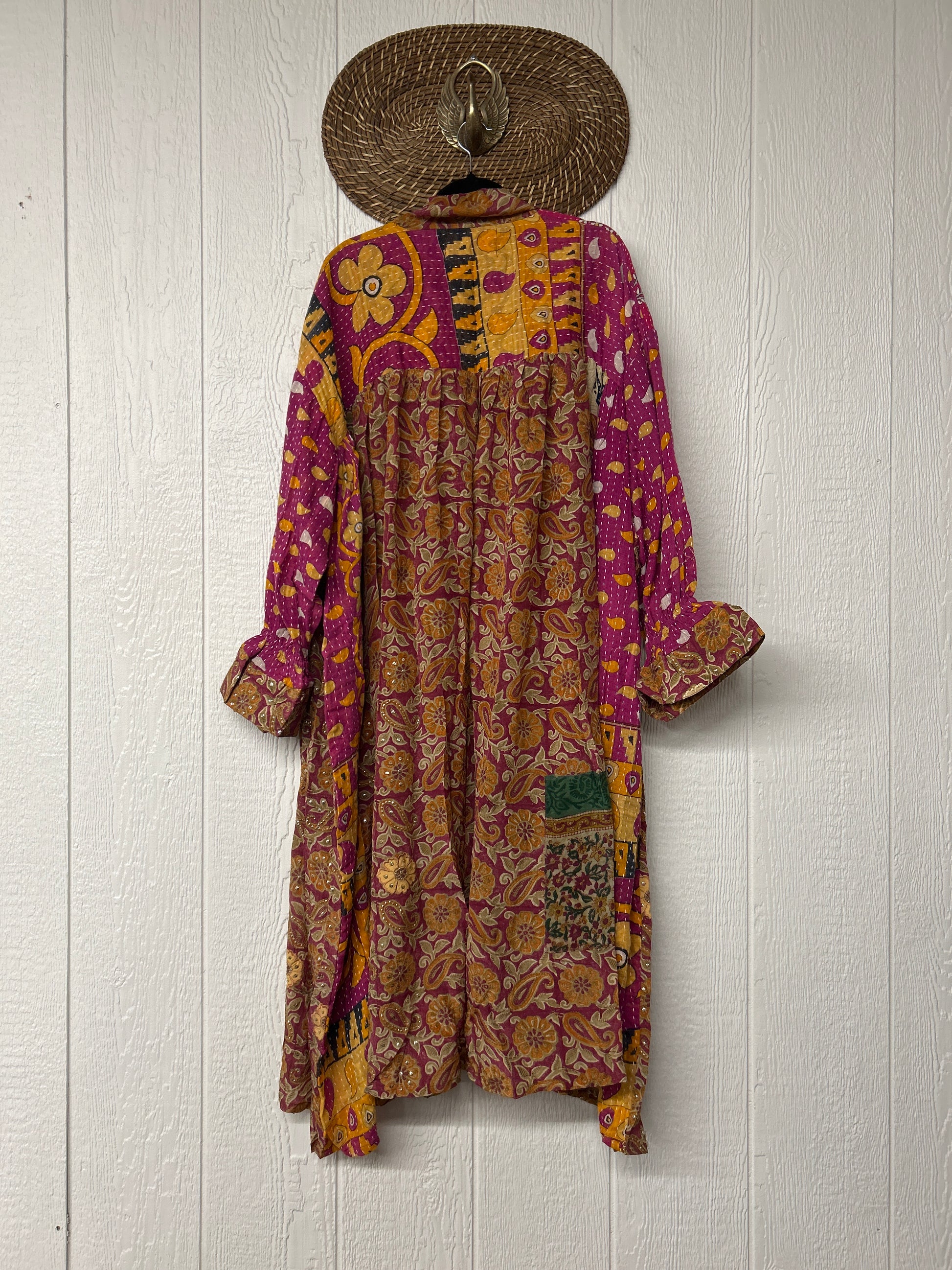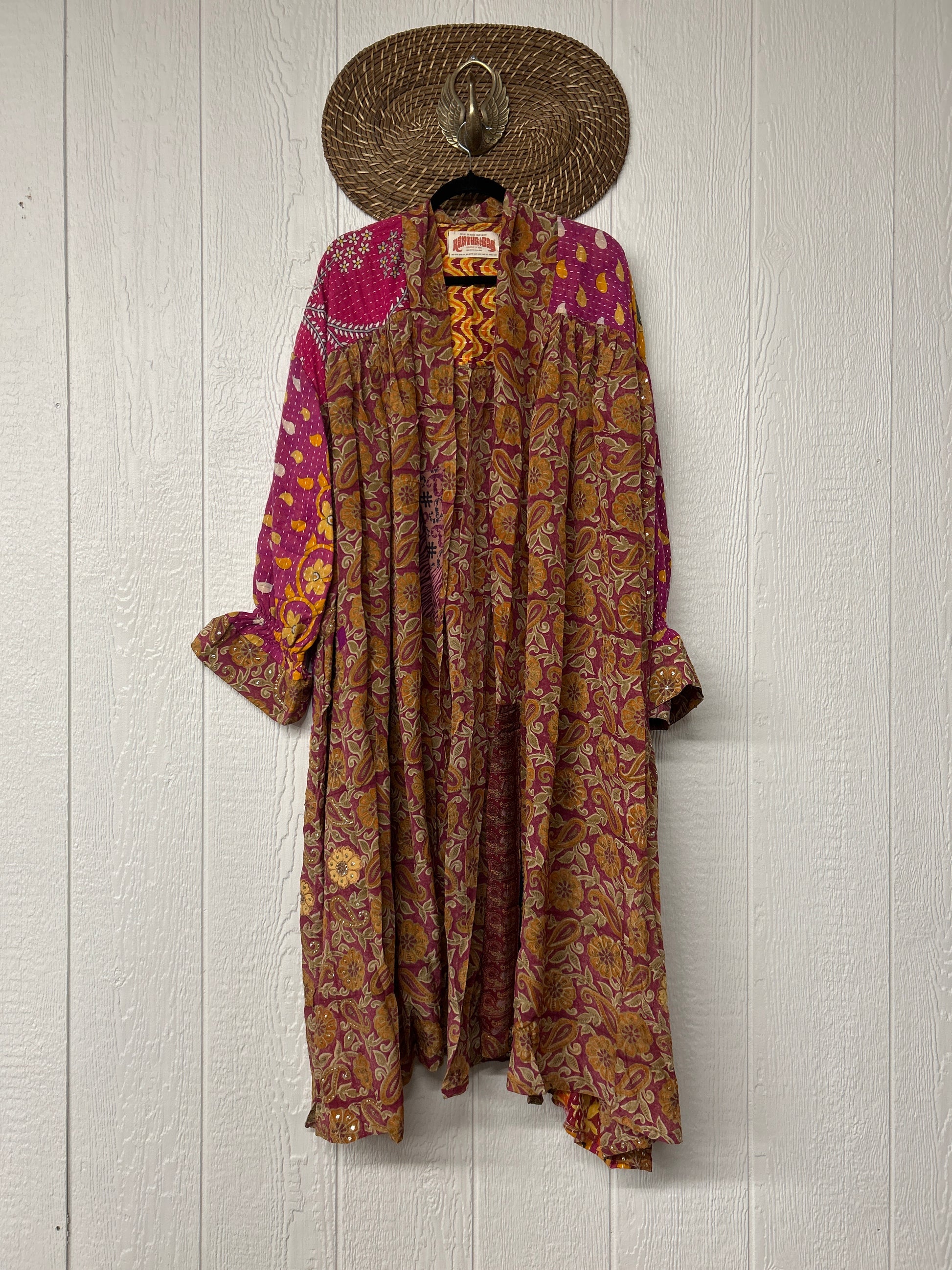 This dream layering piece is made from a mix of our lux vintage kantha embroidered cotton and crepe sari. Features an elastic ruffle sleeve that is easy to pull up or down to your desired length.