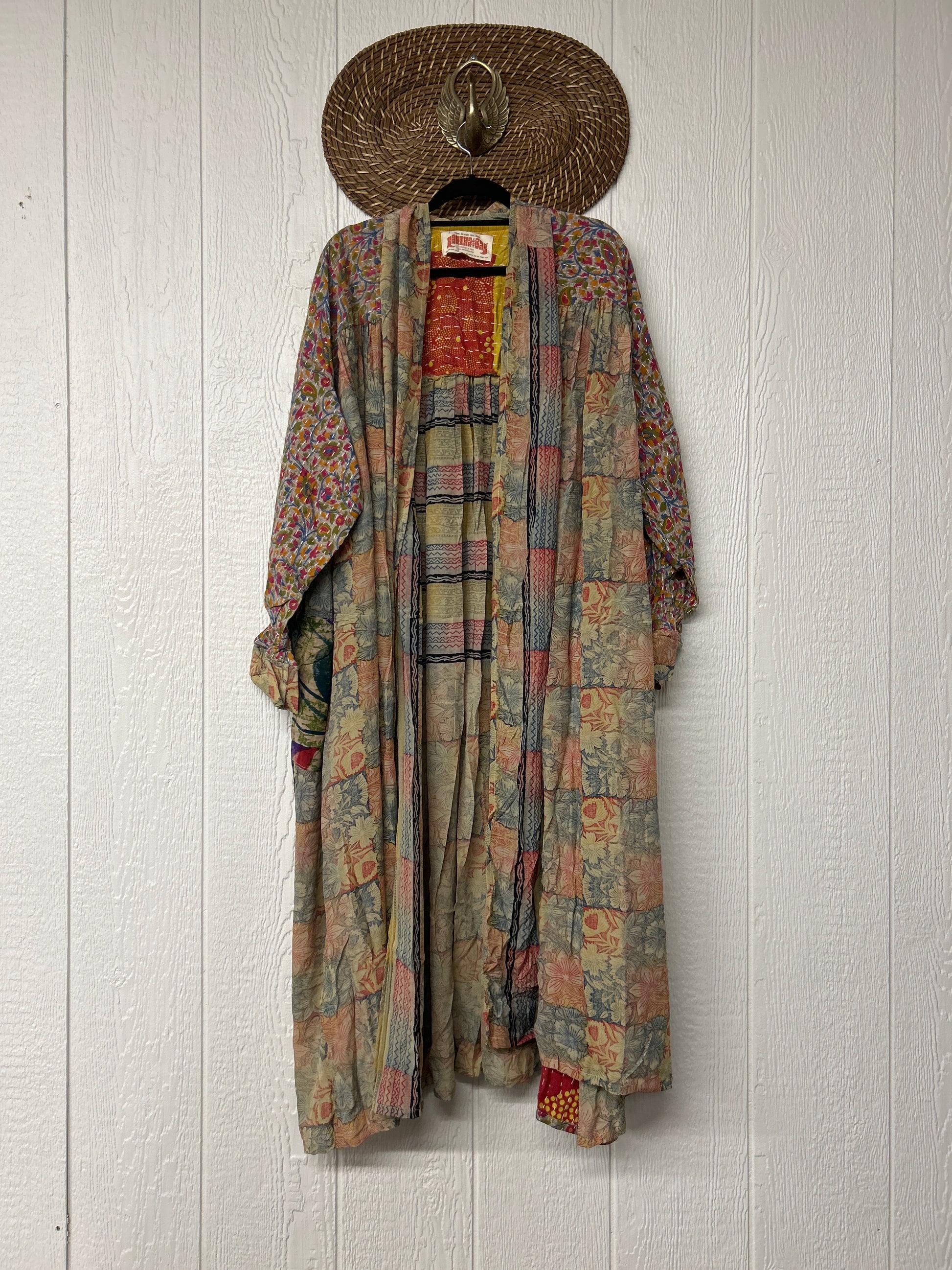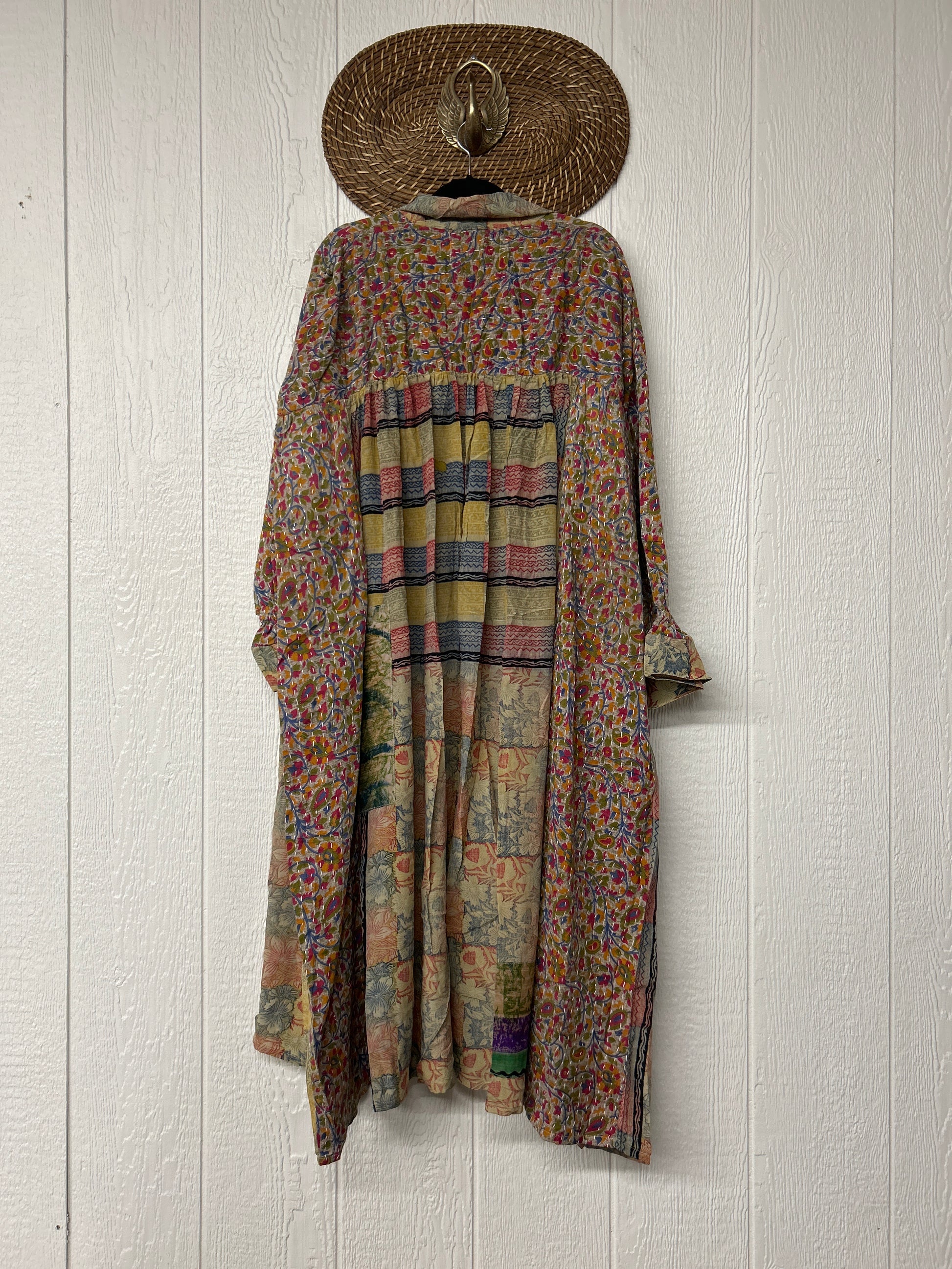 This dream layering piece is made from a mix of our lux vintage kantha embroidered cotton and crepe sari. Features an elastic ruffle sleeve that is easy to pull up or down to your desired length.