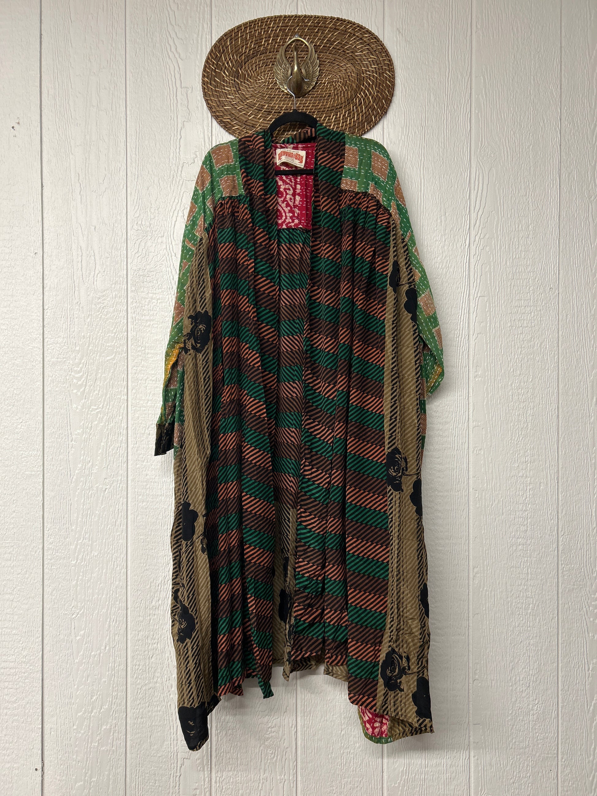 Crafted and sewn by families in a small village in Northern India providing work and a fair living. This product should be hand washed and line dried for longest life. For softness, fluff in the dryer on low heat after it has dried from hand washing. Disclosure: Our vintage styles have lived a full life before becoming the designs in our shop. Fabrics may have small threads or holes in the layers. Color inconsistency or small stains may be present. The saris are sewn together and extend the life of each design. Imperfections should be celebrated.