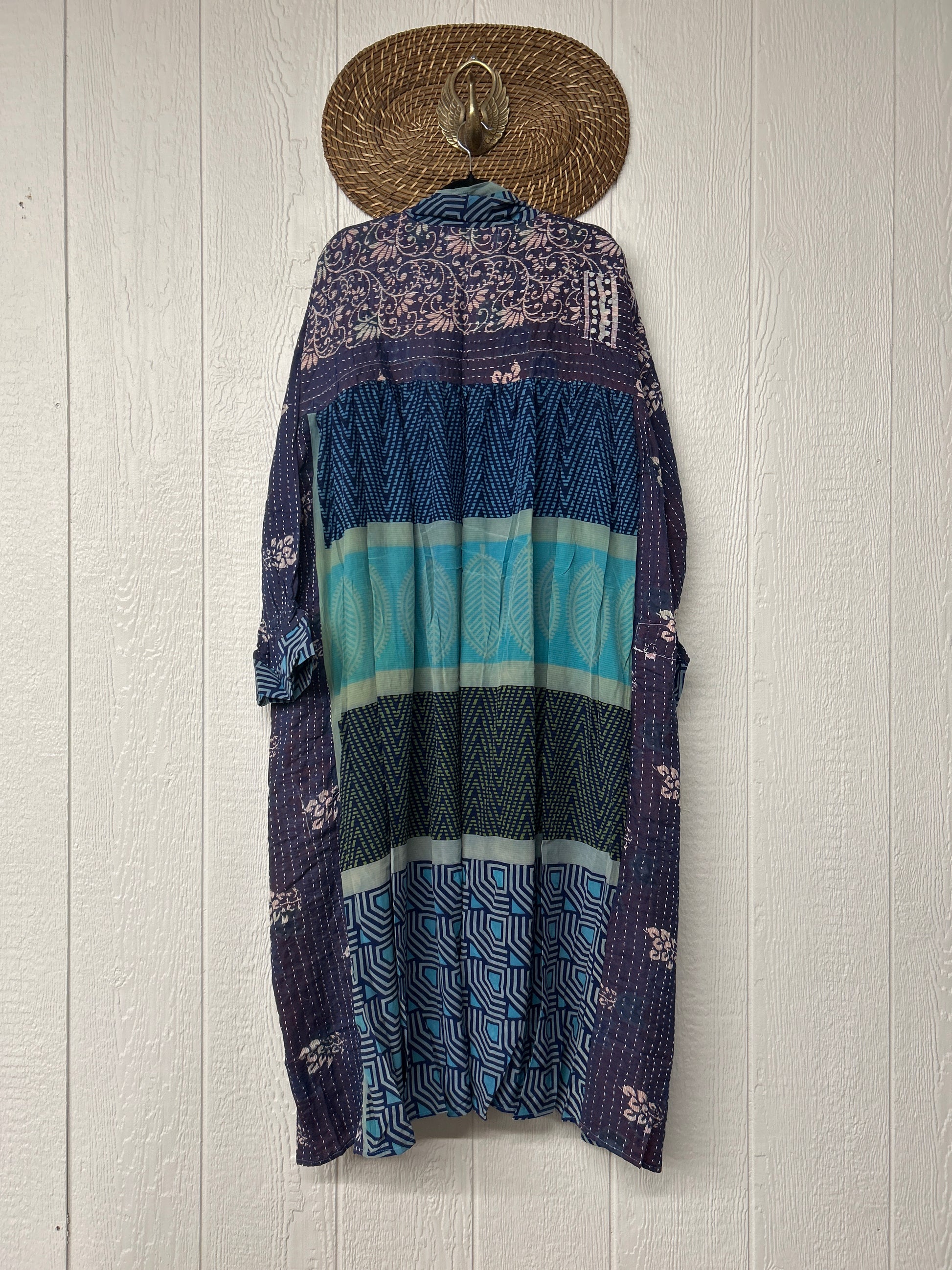 This dream layering piece is made from a mix of our lux vintage kantha embroidered cotton and crepe sari. Features an elastic ruffle sleeve that is easy to pull up or down to your desired length.