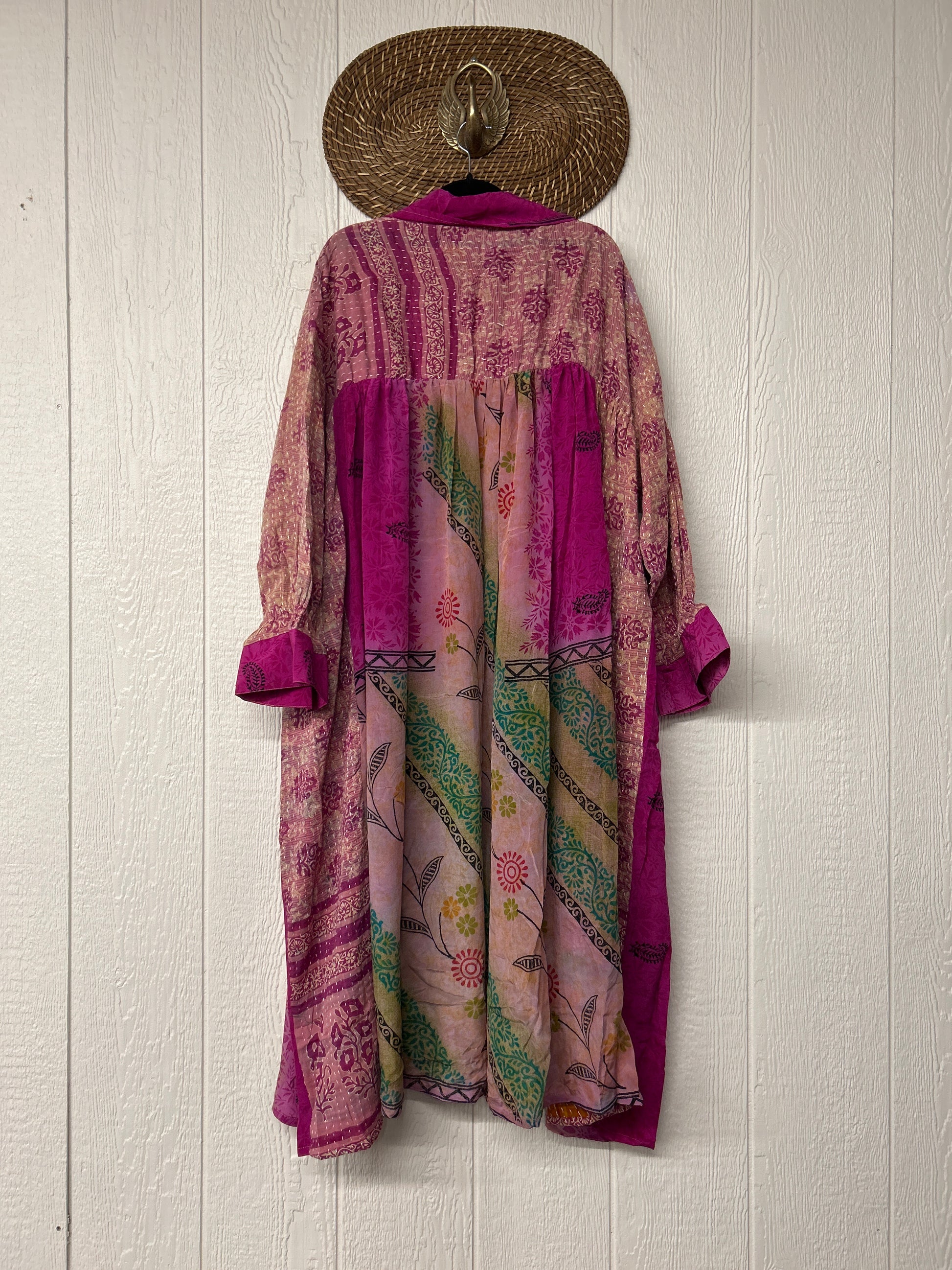 This dream layering piece is made from a mix of our lux vintage kantha embroidered cotton and crepe sari. Features an elastic ruffle sleeve that is easy to pull up or down to your desired length.