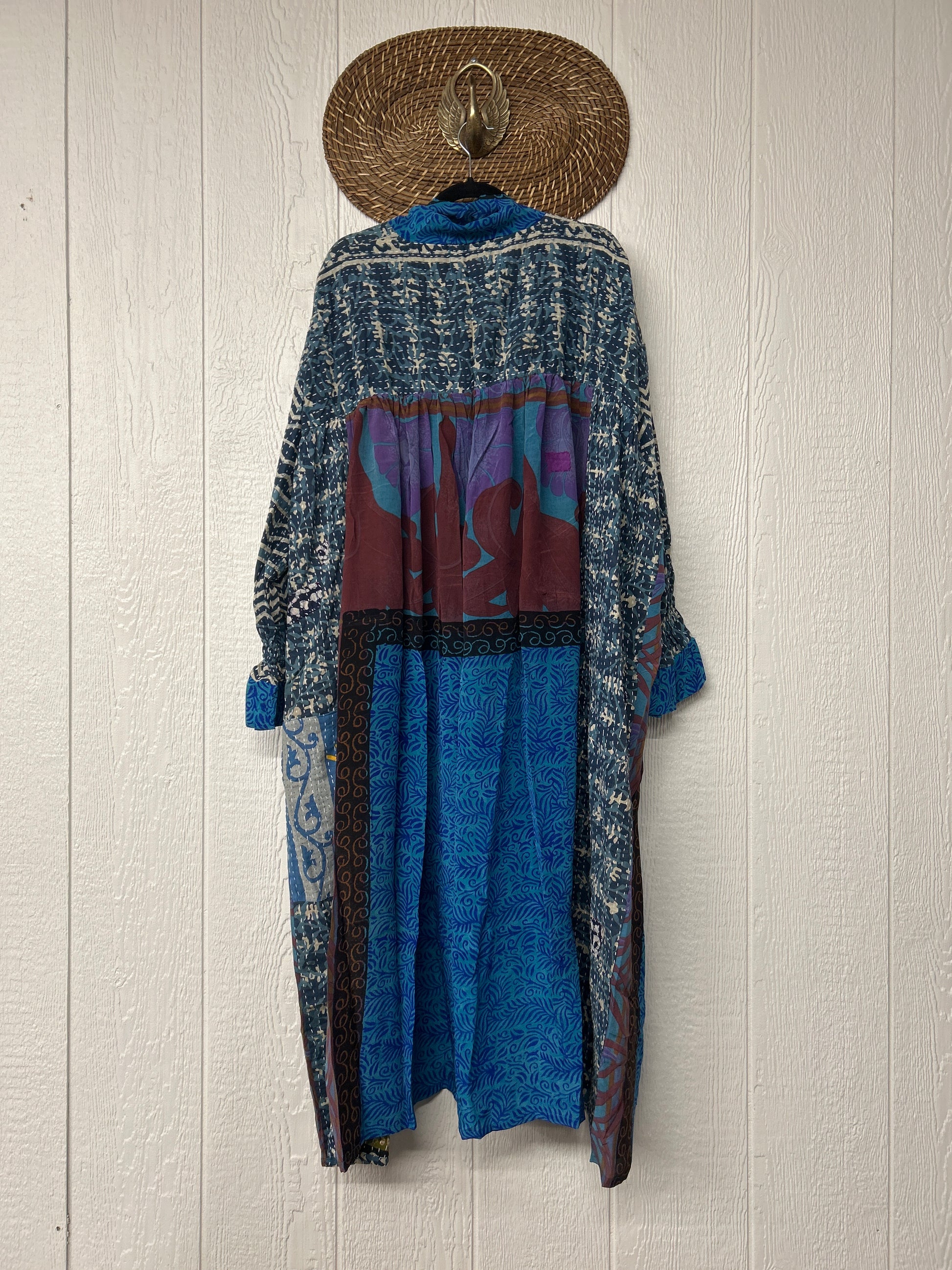 This dream layering piece is made from a mix of our lux vintage kantha embroidered cotton and crepe sari. Features an elastic ruffle sleeve that is easy to pull up or down to your desired length.