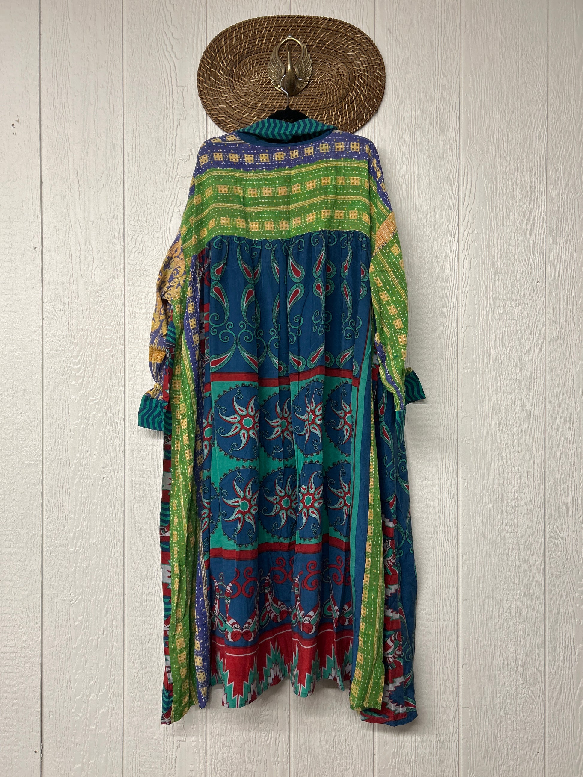 This dream layering piece is made from a mix of our lux vintage kantha embroidered cotton and crepe sari. Features an elastic ruffle sleeve that is easy to pull up or down to your desired length.