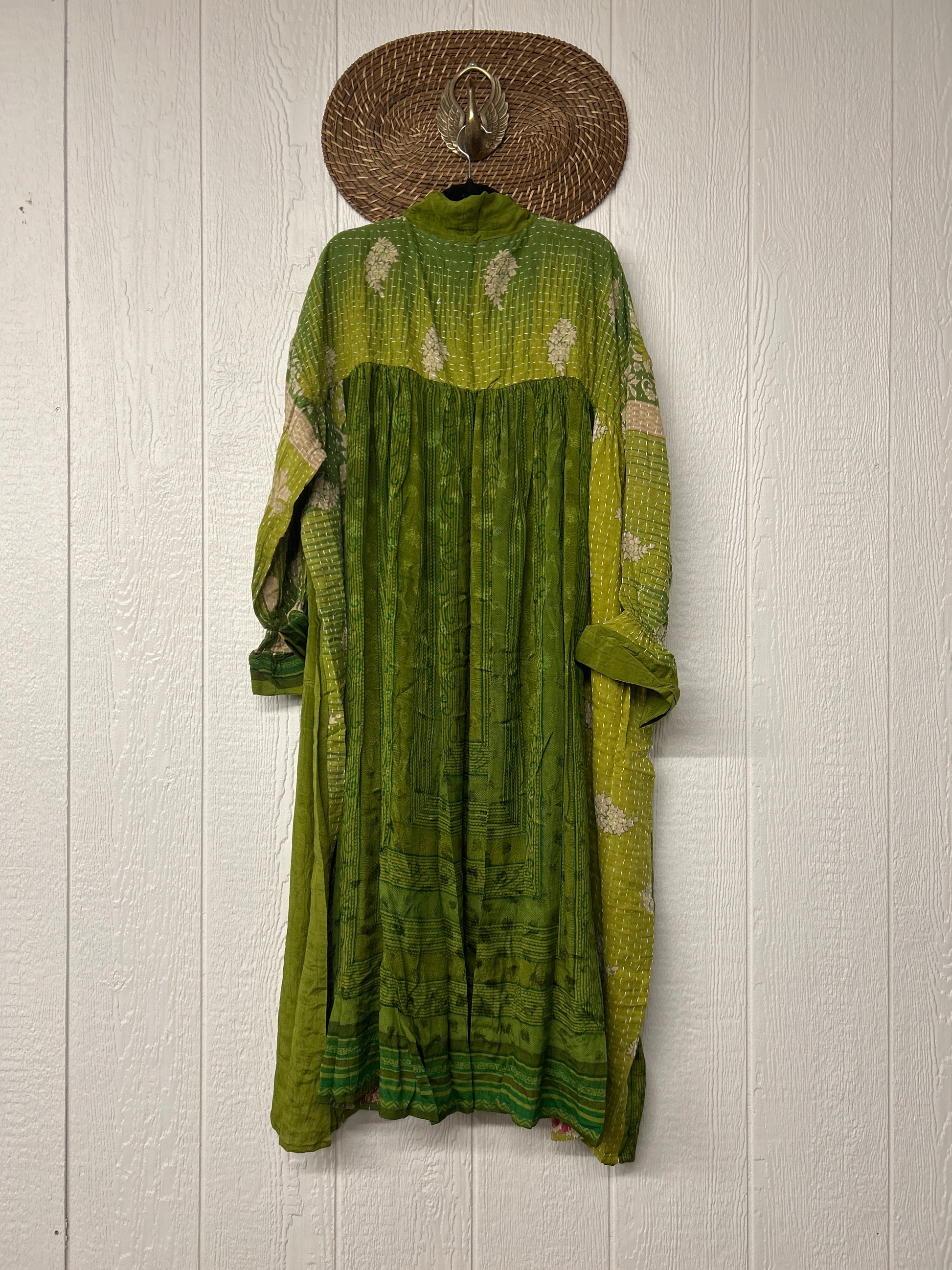 This dream layering piece is made from a mix of our lux vintage kantha embroidered cotton and crepe sari. Features an elastic ruffle sleeve that is easy to pull up or down to your desired length.