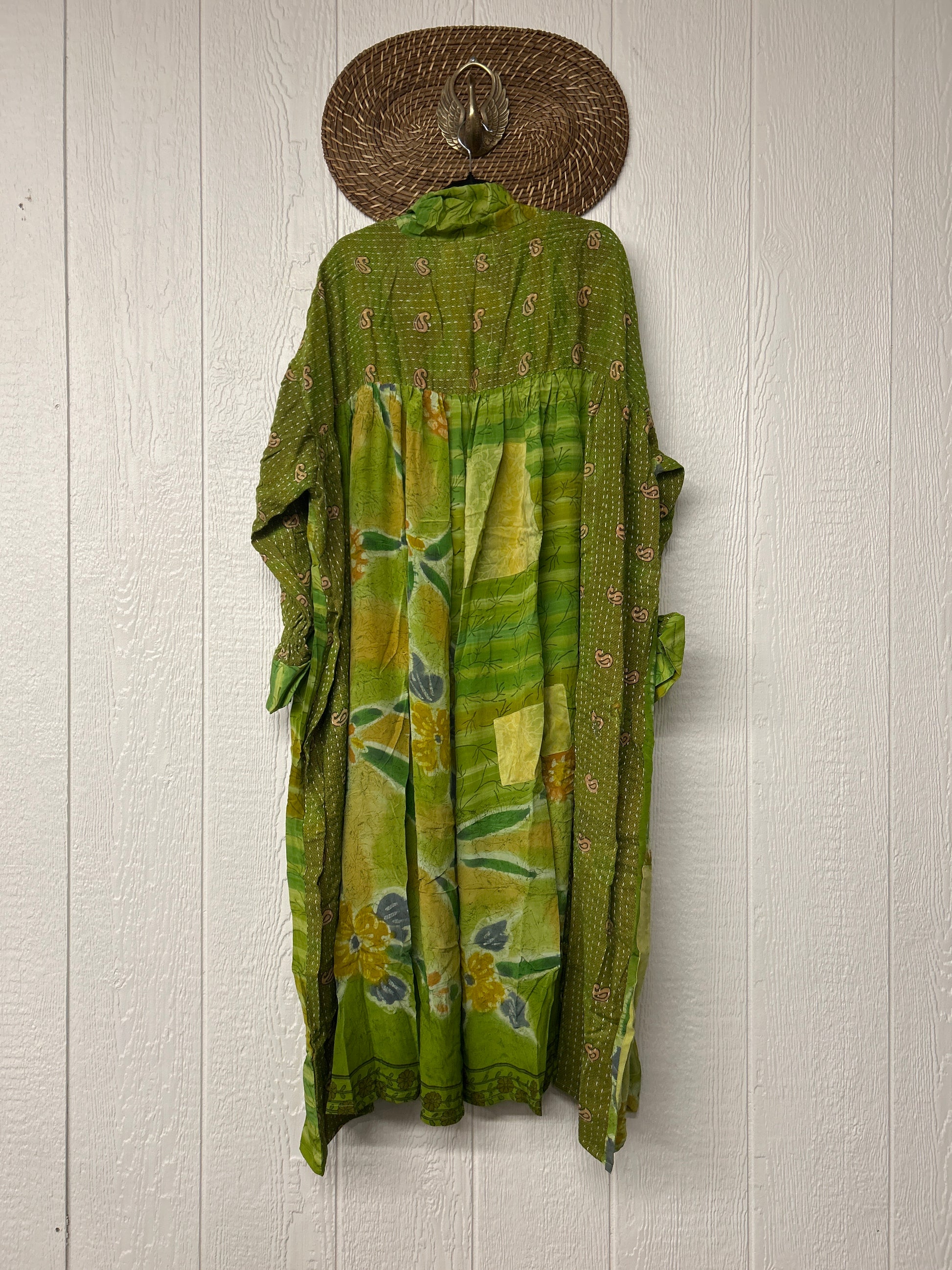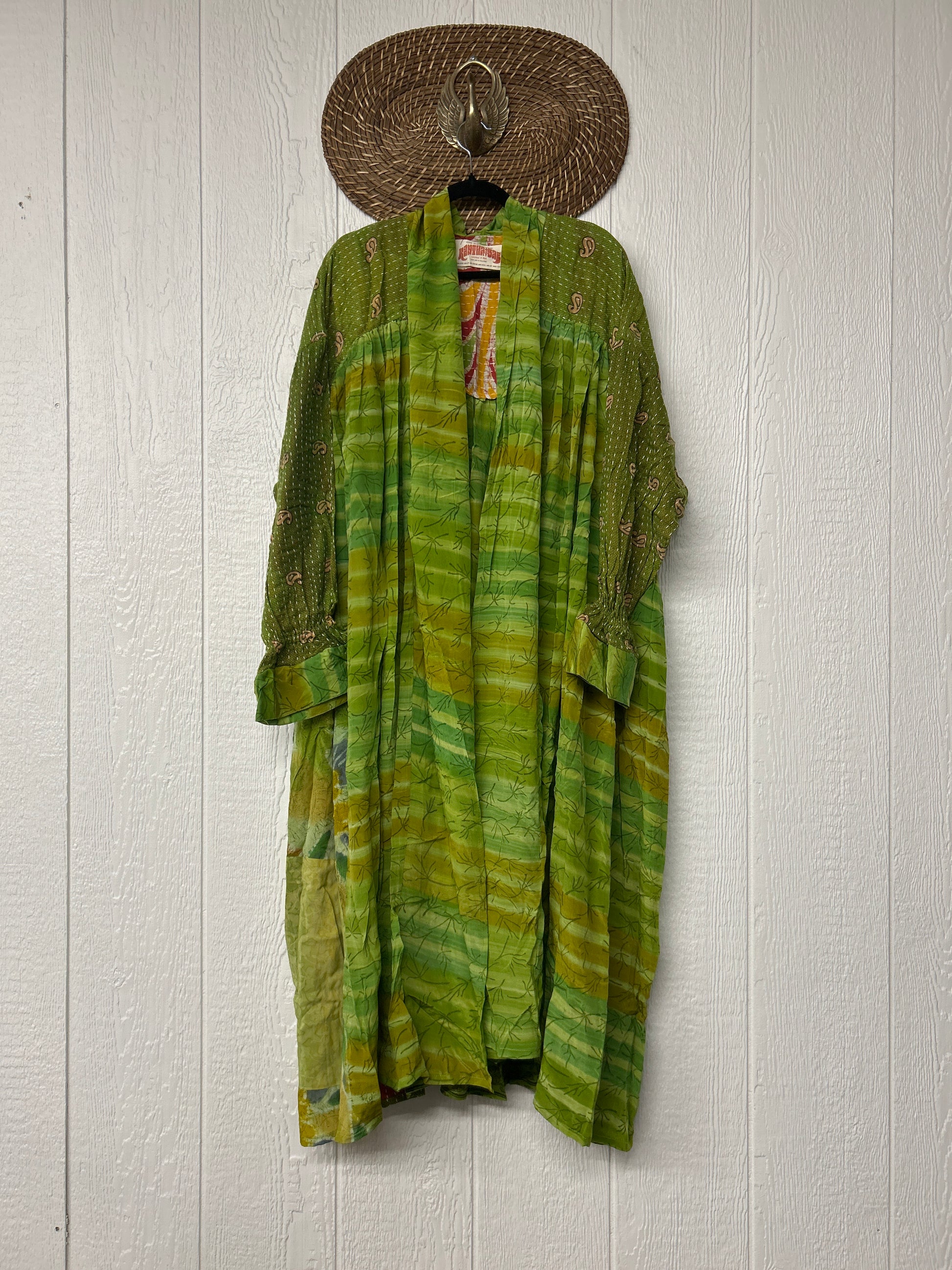 This dream layering piece is made from a mix of our lux vintage kantha embroidered cotton and crepe sari. Features an elastic ruffle sleeve that is easy to pull up or down to your desired length.