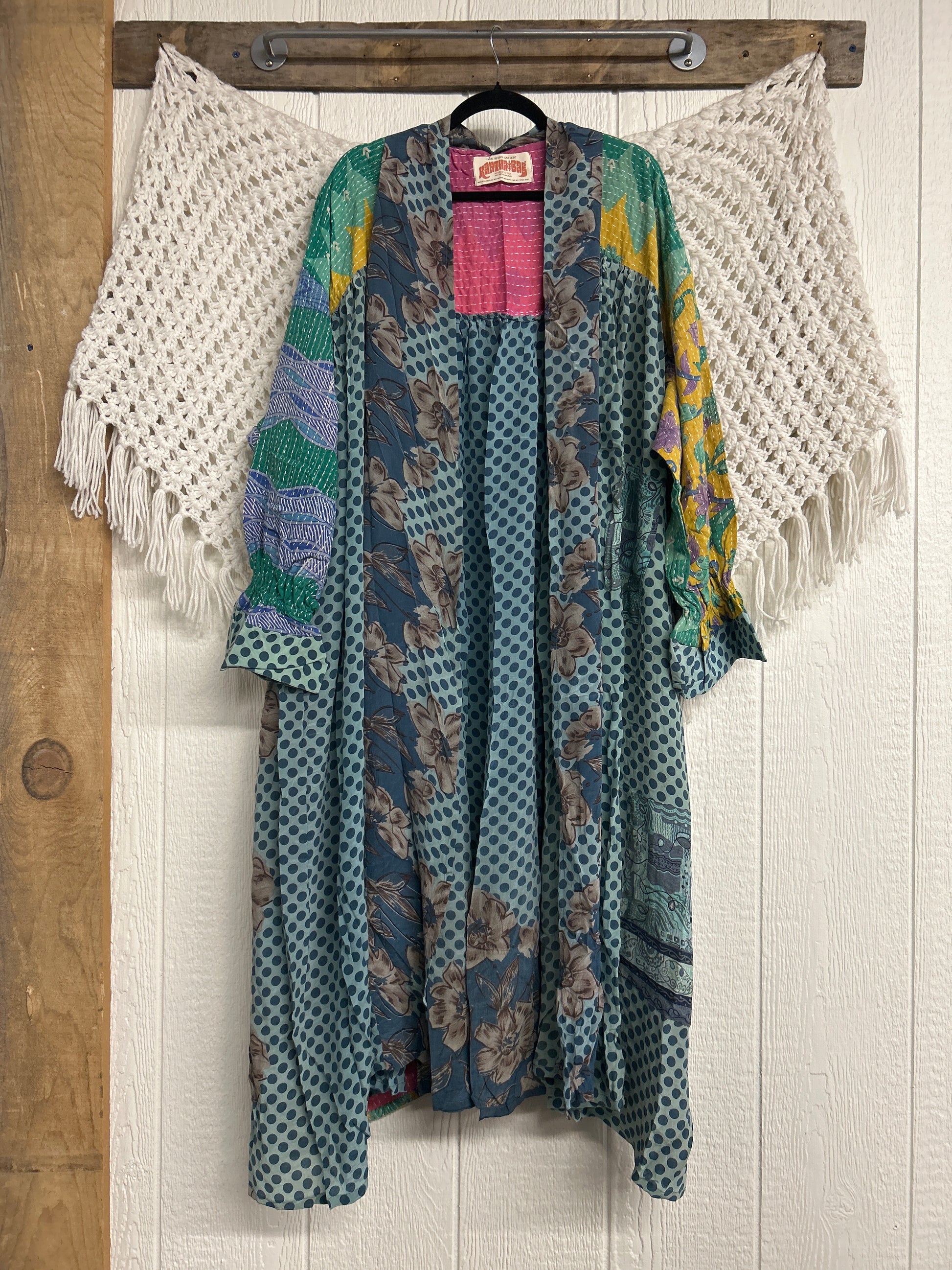 Crafted and sewn by families in a small village in Northern India providing work and a fair living. This product should be hand washed and line dried for longest life. For softness, fluff in the dryer on low heat after it has dried from hand washing. Disclosure: Our vintage styles have lived a full life before becoming the designs in our shop. Fabrics may have small threads or holes in the layers. Color inconsistency or small stains may be present. The saris are sewn together and extend the life of each design. Imperfections should be celebrated.