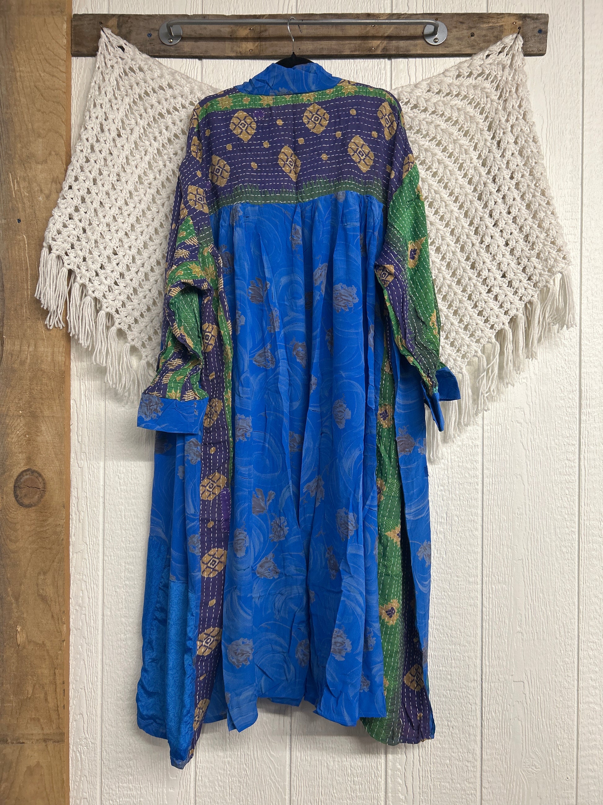 Crafted and sewn by families in a small village in Northern India providing work and a fair living. This product should be hand washed and line dried for longest life. For softness, fluff in the dryer on low heat after it has dried from hand washing. Disclosure: Our vintage styles have lived a full life before becoming the designs in our shop. Fabrics may have small threads or holes in the layers. Color inconsistency or small stains may be present. The saris are sewn together and extend the life of each design. Imperfections should be celebrated.