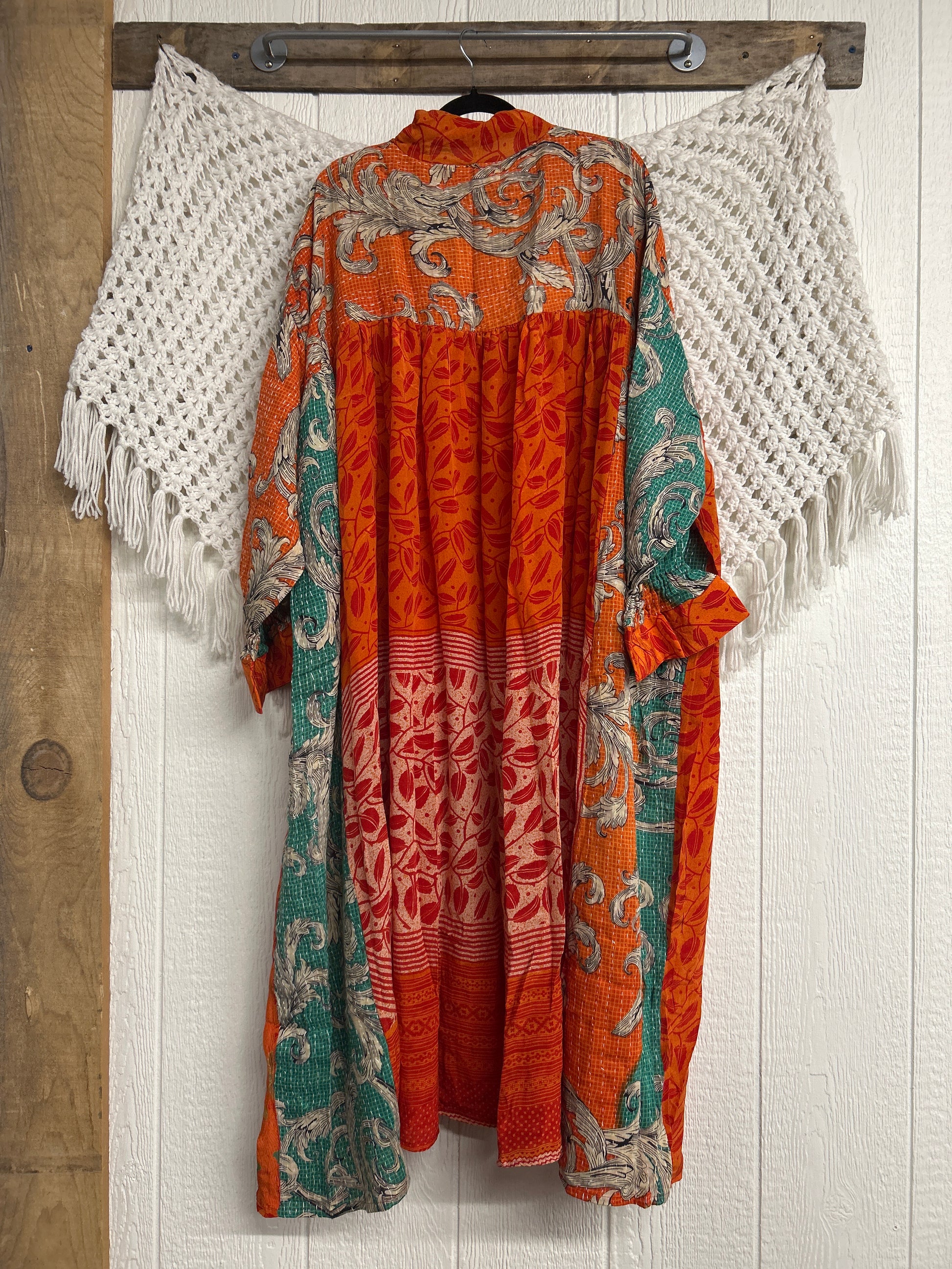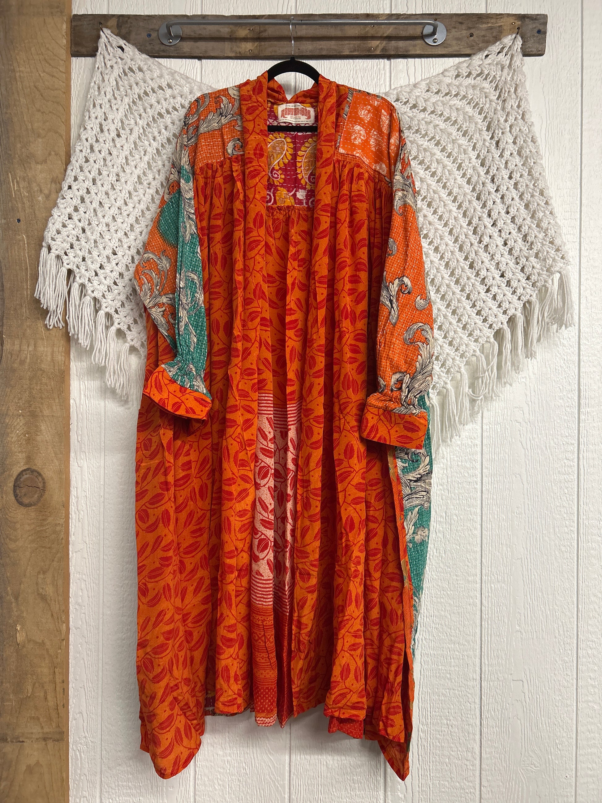 Crafted and sewn by families in a small village in Northern India providing work and a fair living. This product should be hand washed and line dried for longest life. For softness, fluff in the dryer on low heat after it has dried from hand washing. Disclosure: Our vintage styles have lived a full life before becoming the designs in our shop. Fabrics may have small threads or holes in the layers. Color inconsistency or small stains may be present. The saris are sewn together and extend the life of each design. Imperfections should be celebrated.