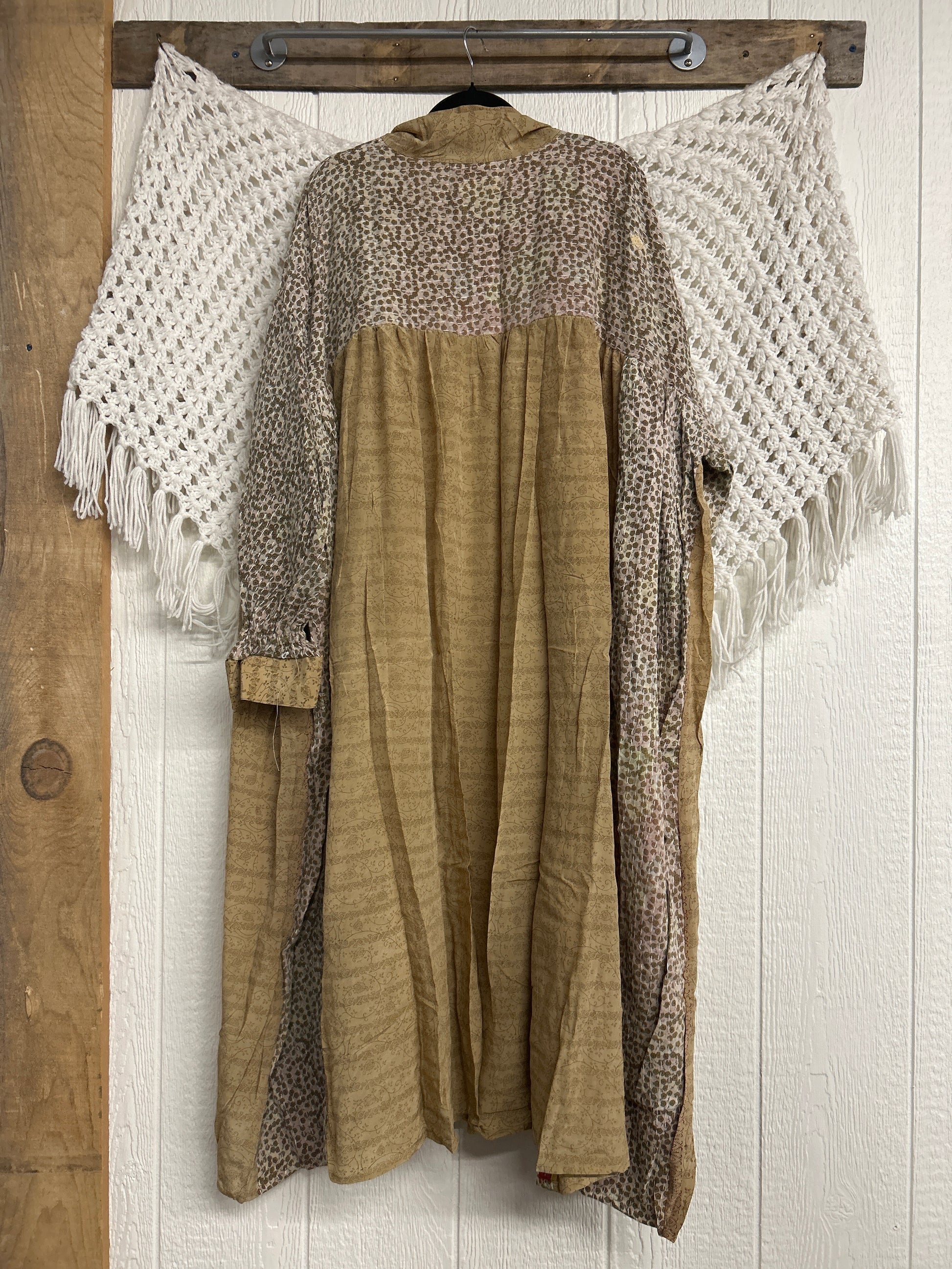 Crafted and sewn by families in a small village in Northern India providing work and a fair living. This product should be hand washed and line dried for longest life. For softness, fluff in the dryer on low heat after it has dried from hand washing. Disclosure: Our vintage styles have lived a full life before becoming the designs in our shop. Fabrics may have small threads or holes in the layers. Color inconsistency or small stains may be present. The saris are sewn together and extend the life of each design. Imperfections should be celebrated.