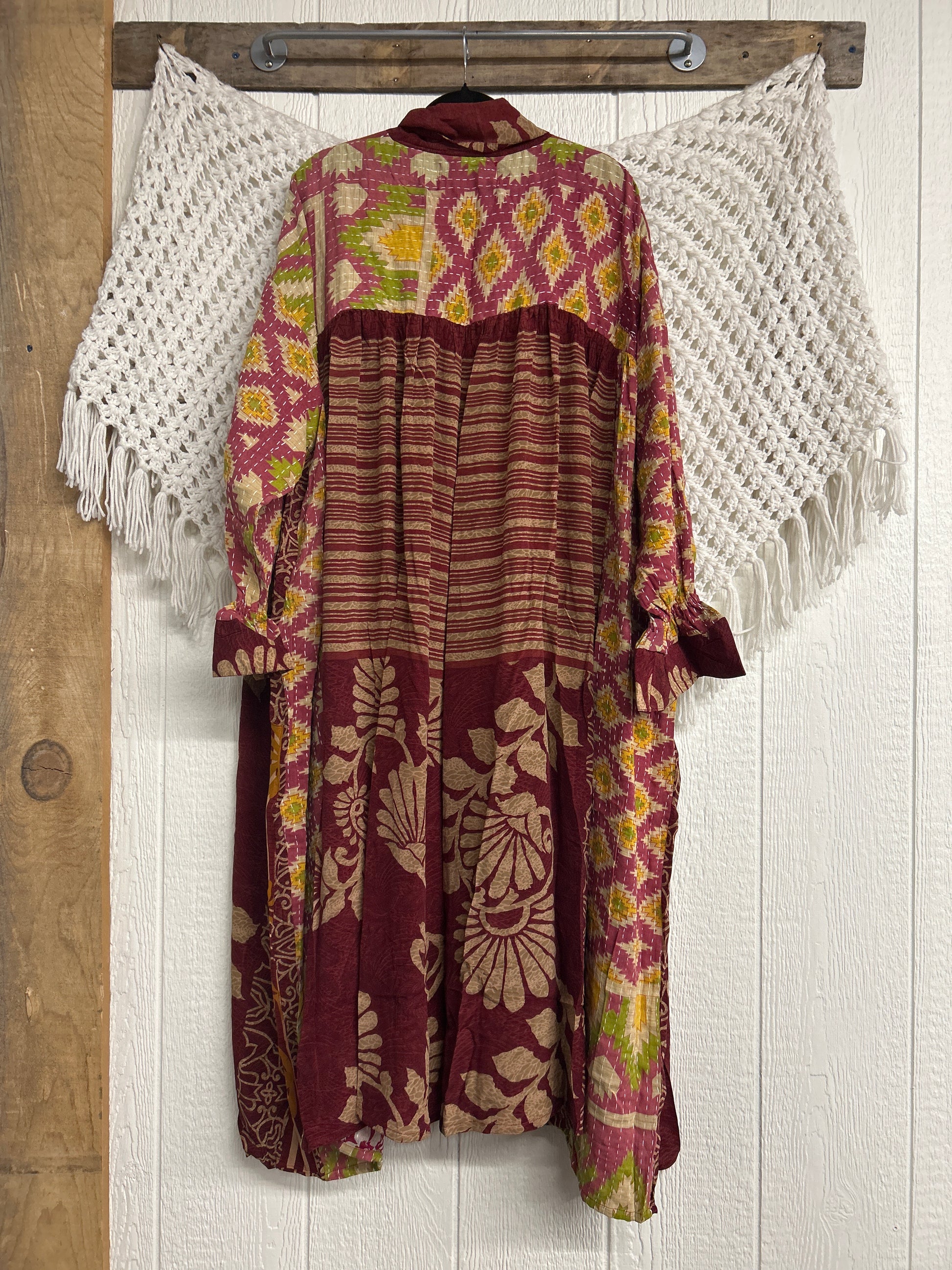 This dream layering piece is made from a mix of our lux vintage kantha embroidered cotton and crepe sari. Features an elastic ruffle sleeve that is easy to pull up or down to your desired length.