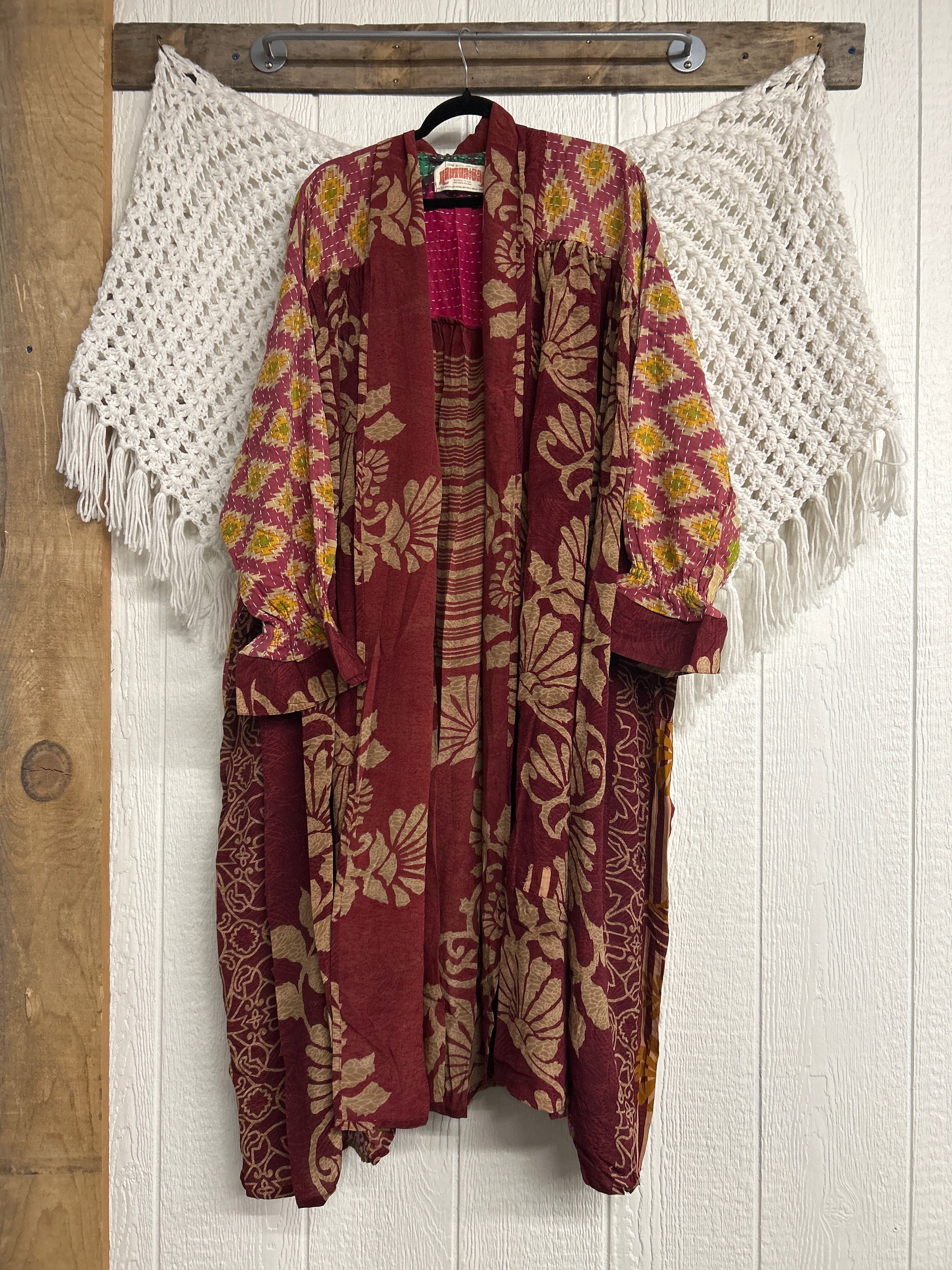 Crafted and sewn by families in a small village in Northern India providing work and a fair living. This product should be hand washed and line dried for longest life. For softness, fluff in the dryer on low heat after it has dried from hand washing. Disclosure: Our vintage styles have lived a full life before becoming the designs in our shop. Fabrics may have small threads or holes in the layers. Color inconsistency or small stains may be present. The saris are sewn together and extend the life of each design. Imperfections should be celebrated.