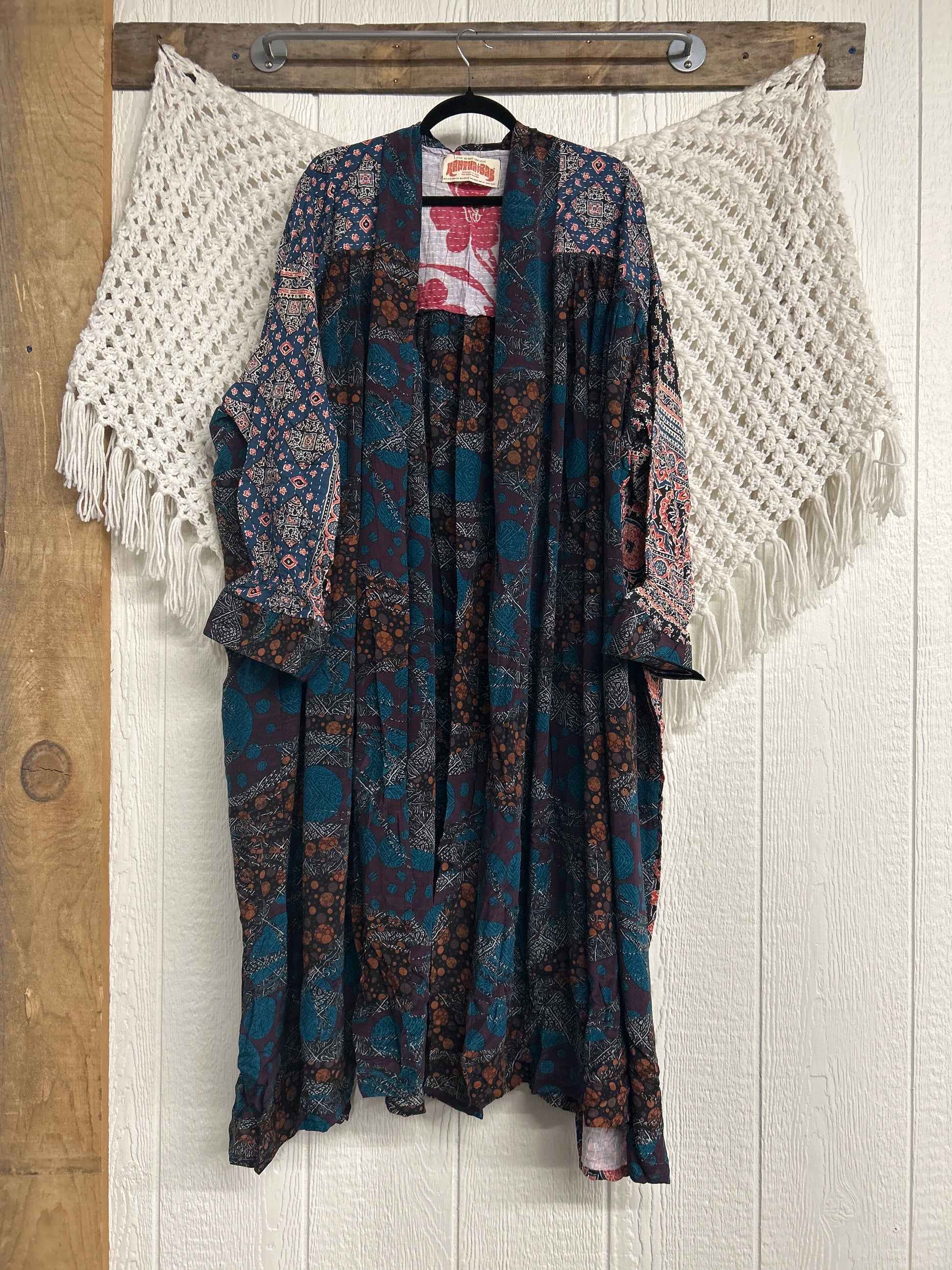 Crafted and sewn by families in a small village in Northern India providing work and a fair living. This product should be hand washed and line dried for longest life. For softness, fluff in the dryer on low heat after it has dried from hand washing. Disclosure: Our vintage styles have lived a full life before becoming the designs in our shop. Fabrics may have small threads or holes in the layers. Color inconsistency or small stains may be present. The saris are sewn together and extend the life of each design. Imperfections should be celebrated.