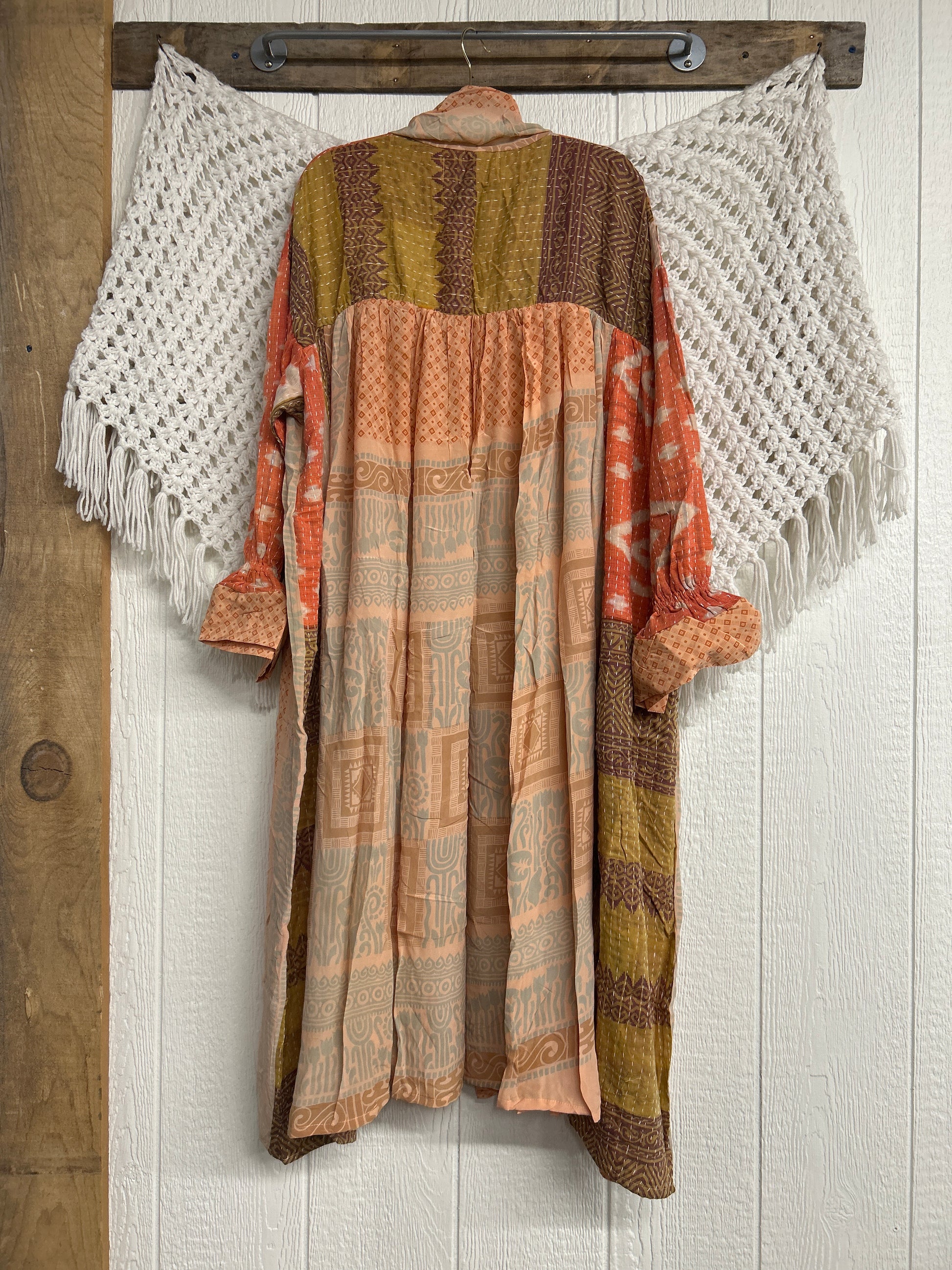 This dream layering piece is made from a mix of our lux vintage kantha embroidered cotton and crepe sari. Features an elastic ruffle sleeve that is easy to pull up or down to your desired length.