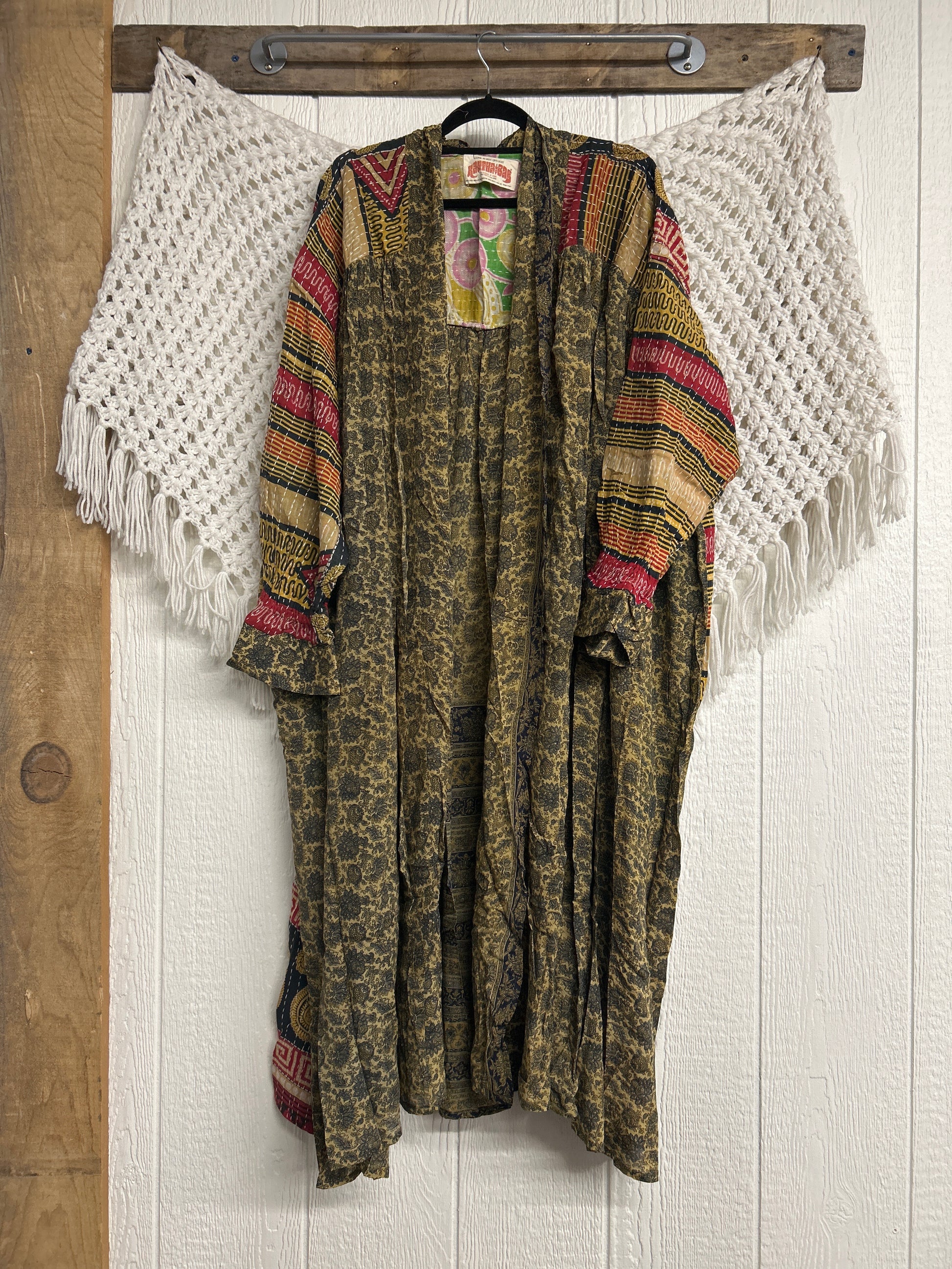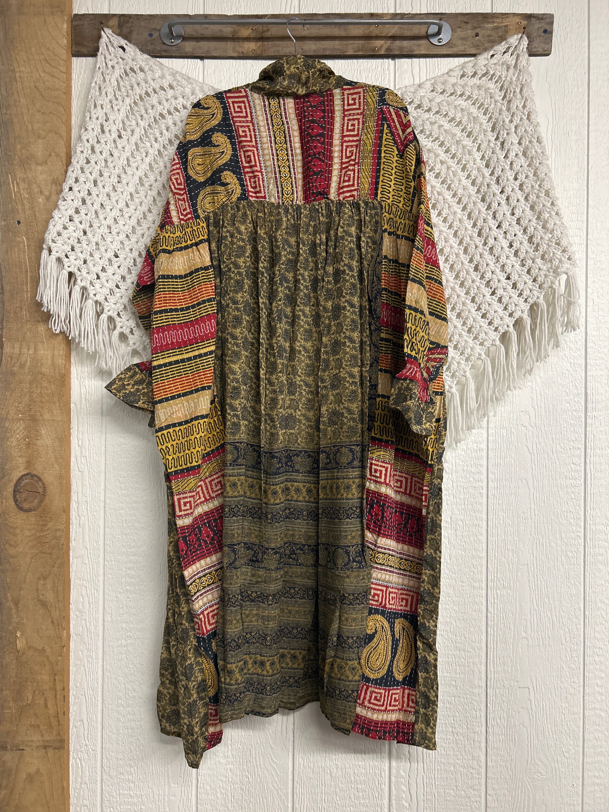 Crafted and sewn by families in a small village in Northern India providing work and a fair living. This product should be hand washed and line dried for longest life. For softness, fluff in the dryer on low heat after it has dried from hand washing. Disclosure: Our vintage styles have lived a full life before becoming the designs in our shop. Fabrics may have small threads or holes in the layers. Color inconsistency or small stains may be present. The saris are sewn together and extend the life of each design. Imperfections should be celebrated.