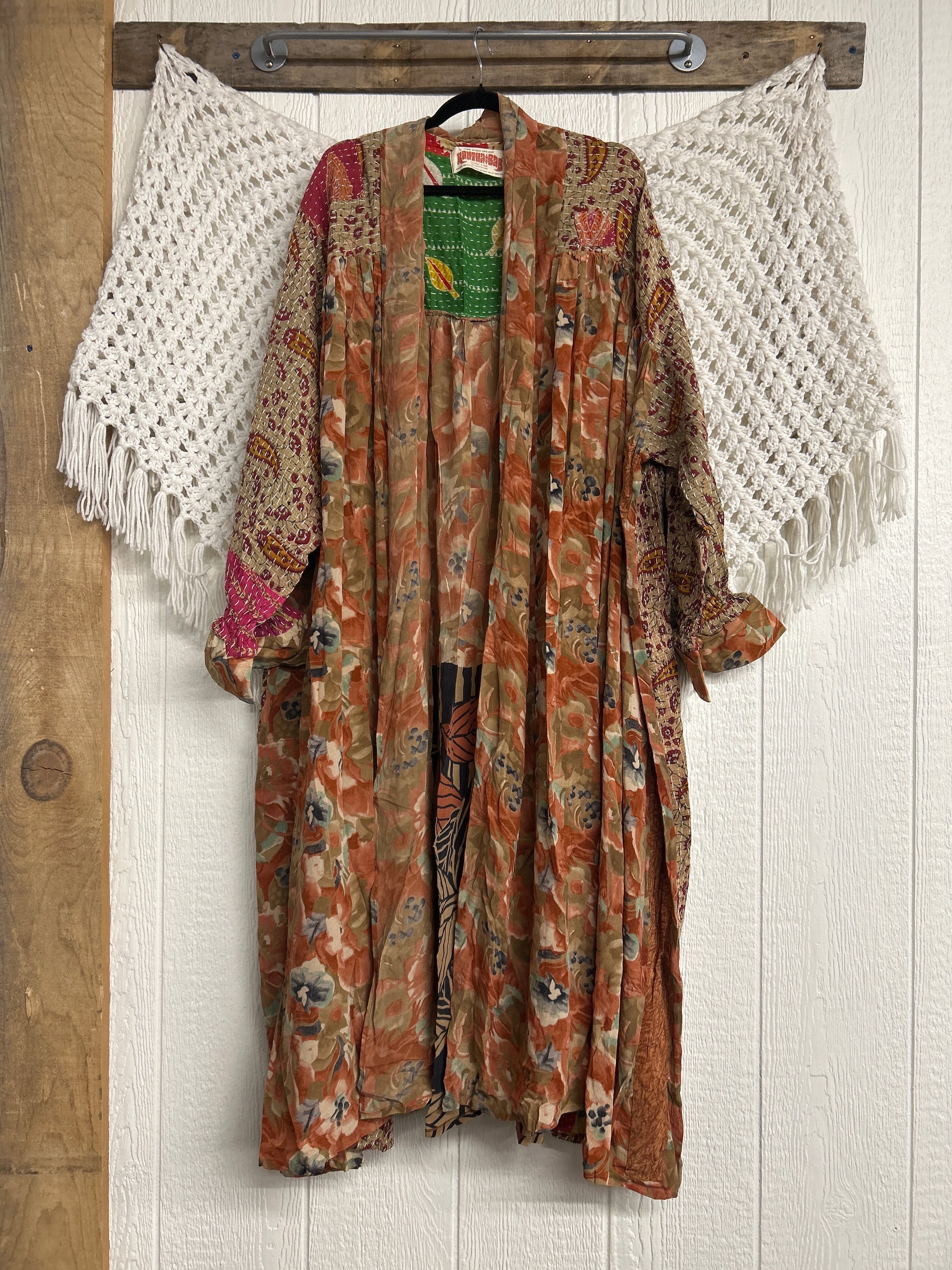 Crafted and sewn by families in a small village in Northern India providing work and a fair living. This product should be hand washed and line dried for longest life. For softness, fluff in the dryer on low heat after it has dried from hand washing. Disclosure: Our vintage styles have lived a full life before becoming the designs in our shop. Fabrics may have small threads or holes in the layers. Color inconsistency or small stains may be present. The saris are sewn together and extend the life of each design. Imperfections should be celebrated.
