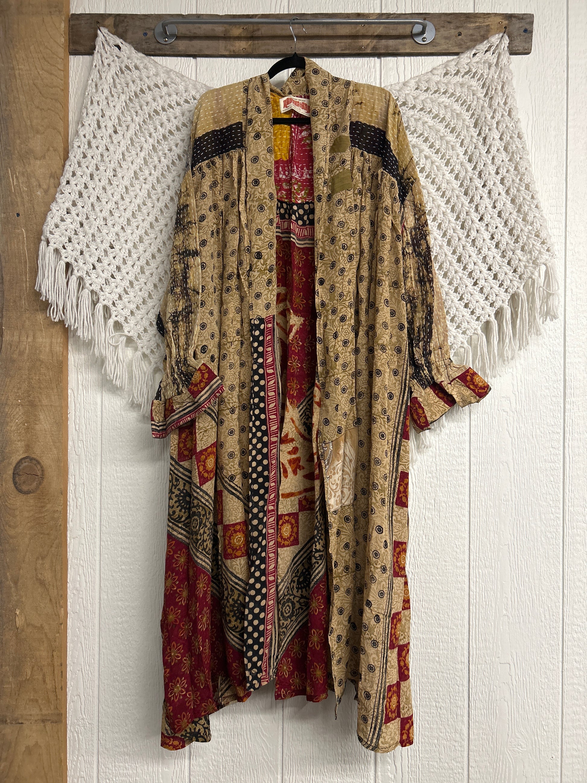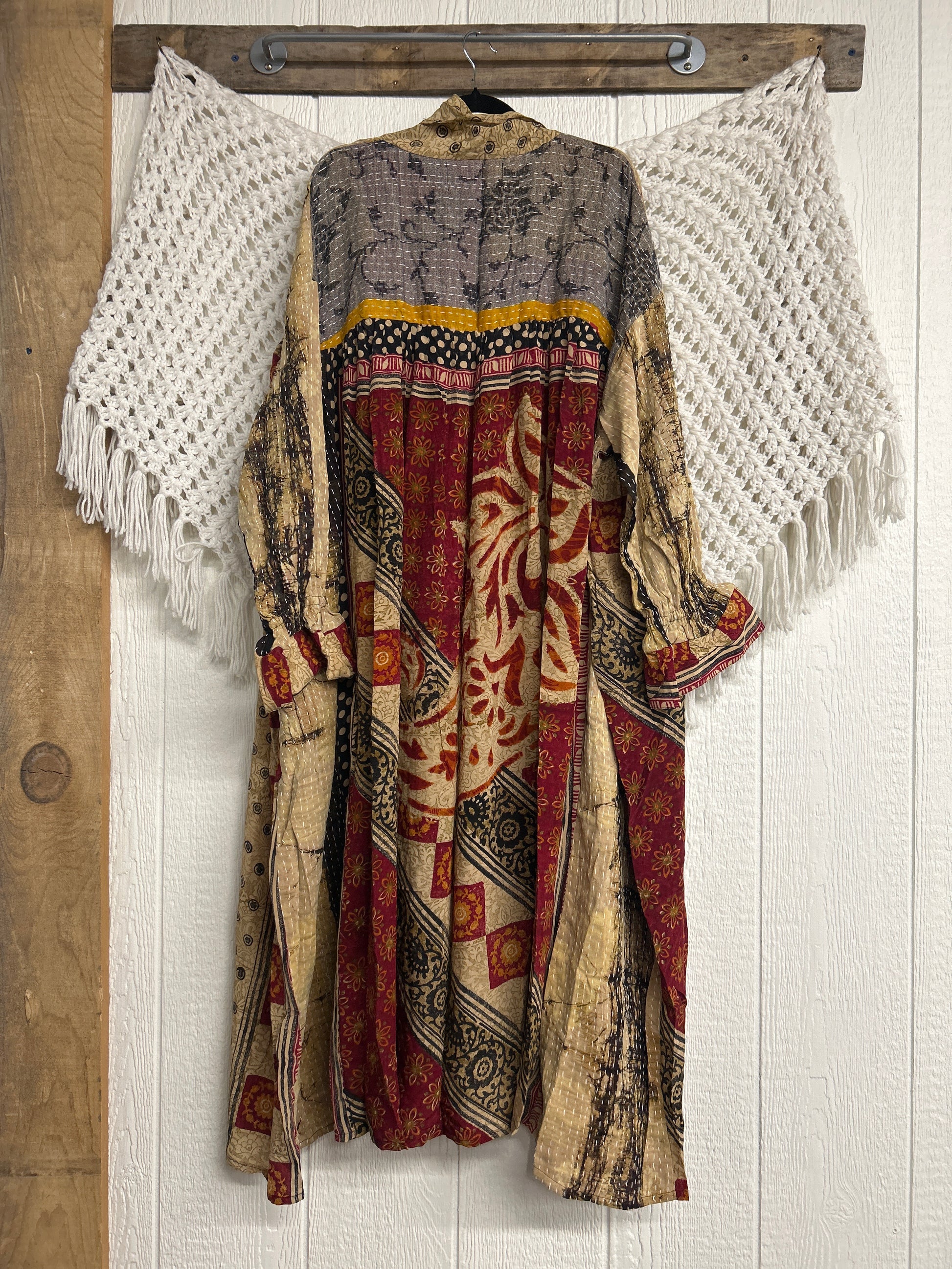 Crafted and sewn by families in a small village in Northern India providing work and a fair living. This product should be hand washed and line dried for longest life. For softness, fluff in the dryer on low heat after it has dried from hand washing. Disclosure: Our vintage styles have lived a full life before becoming the designs in our shop. Fabrics may have small threads or holes in the layers. Color inconsistency or small stains may be present. The saris are sewn together and extend the life of each design. Imperfections should be celebrated.