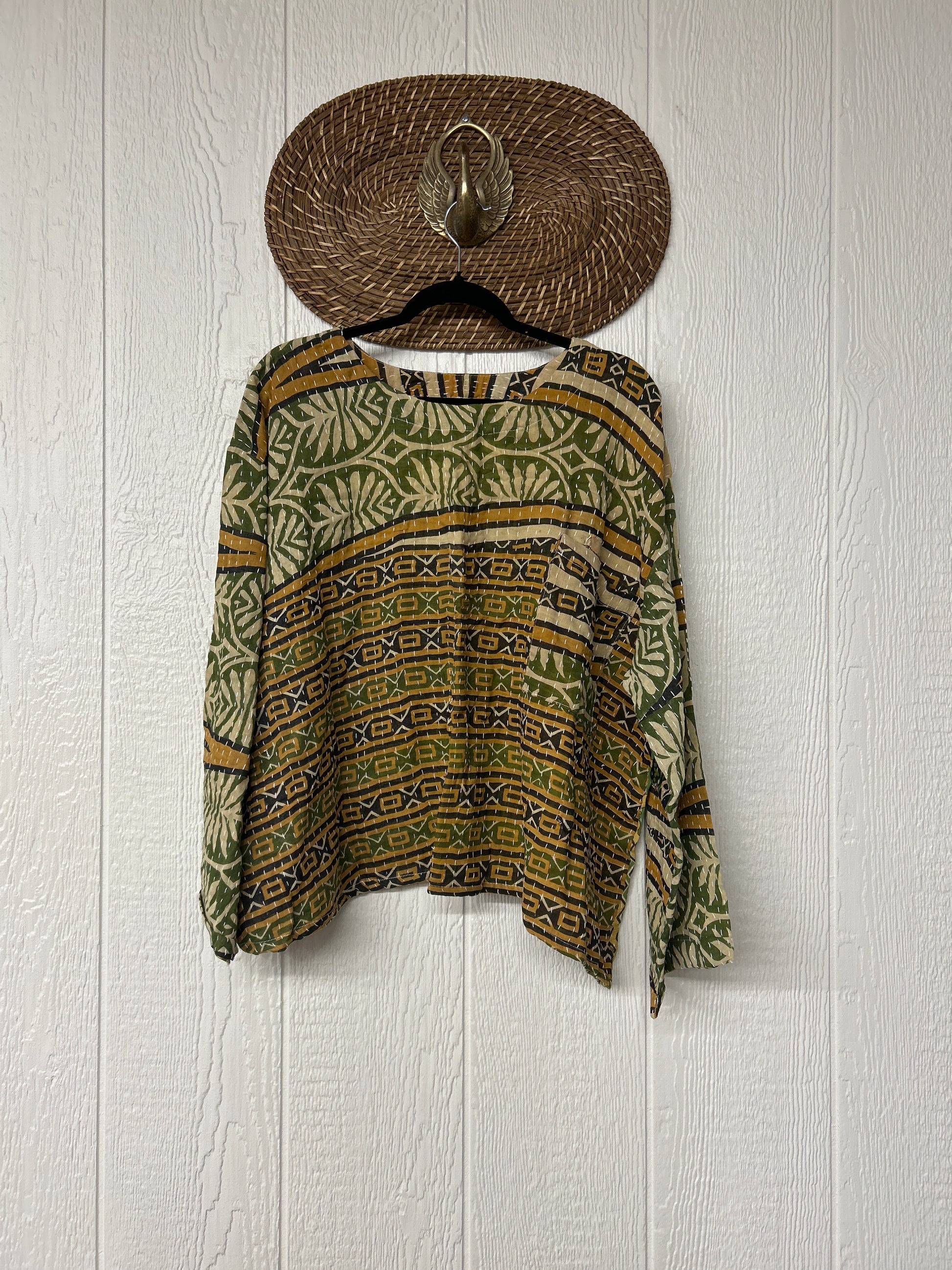 sari. Features long wide sleeves and a pocket on the chest to hold your essentials while you're on lifes adventures.
