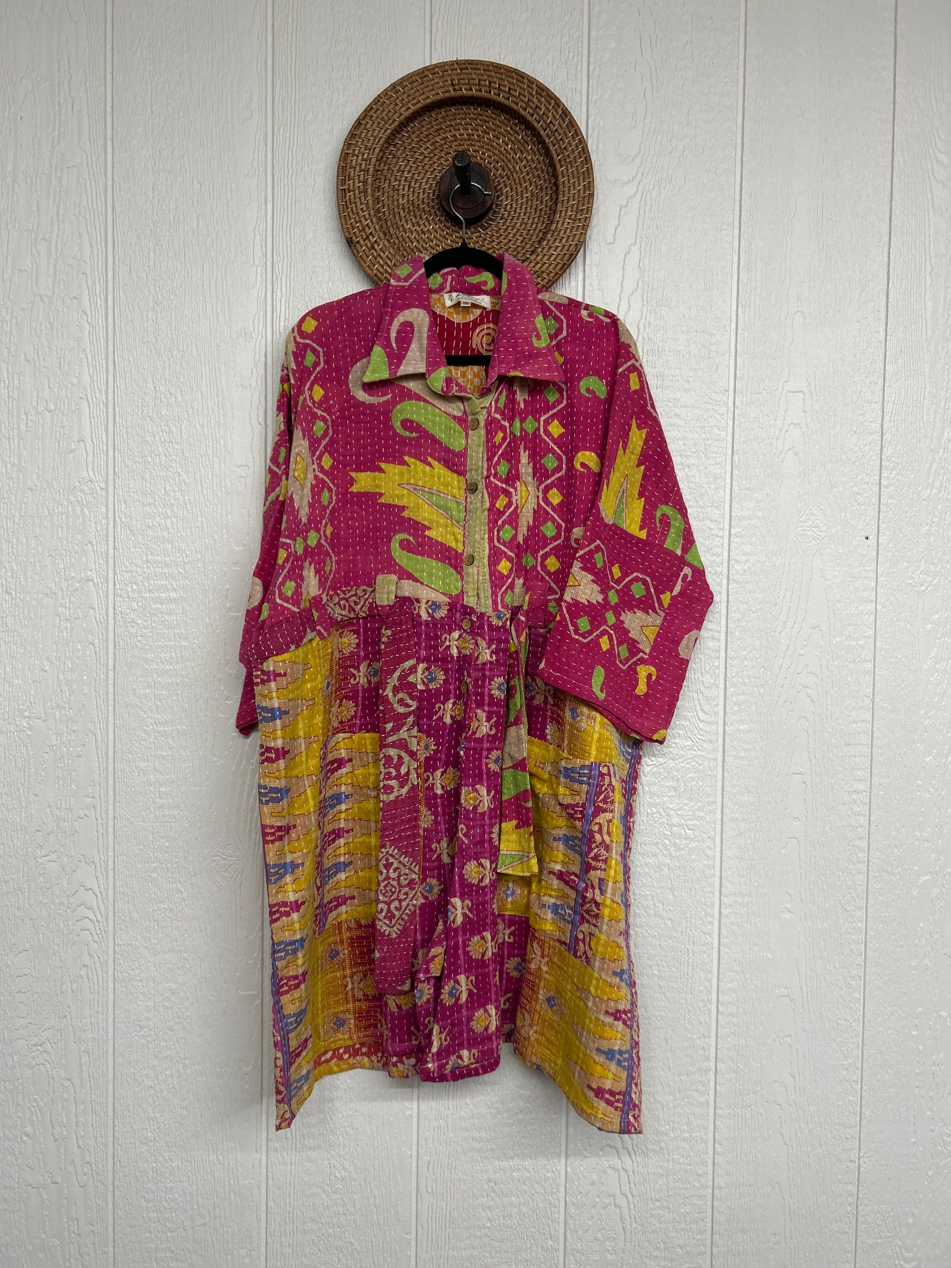 Crafted from our ultra-luxe Kantha stitch vintage cotton sari the Gravity Shortall features a button down front placket, adjustable belt, and cropped "short" length.Size recommended 00-20/22
