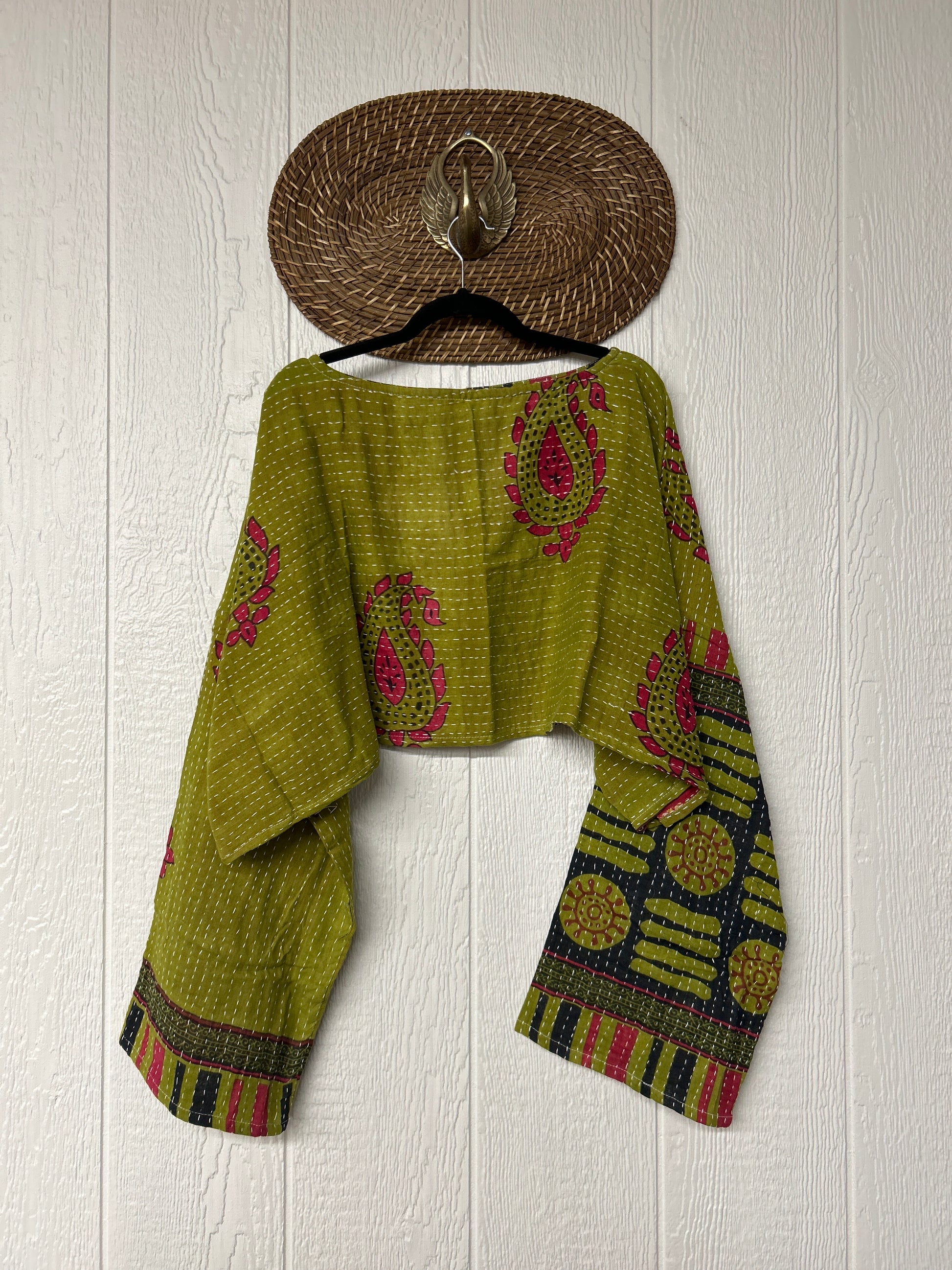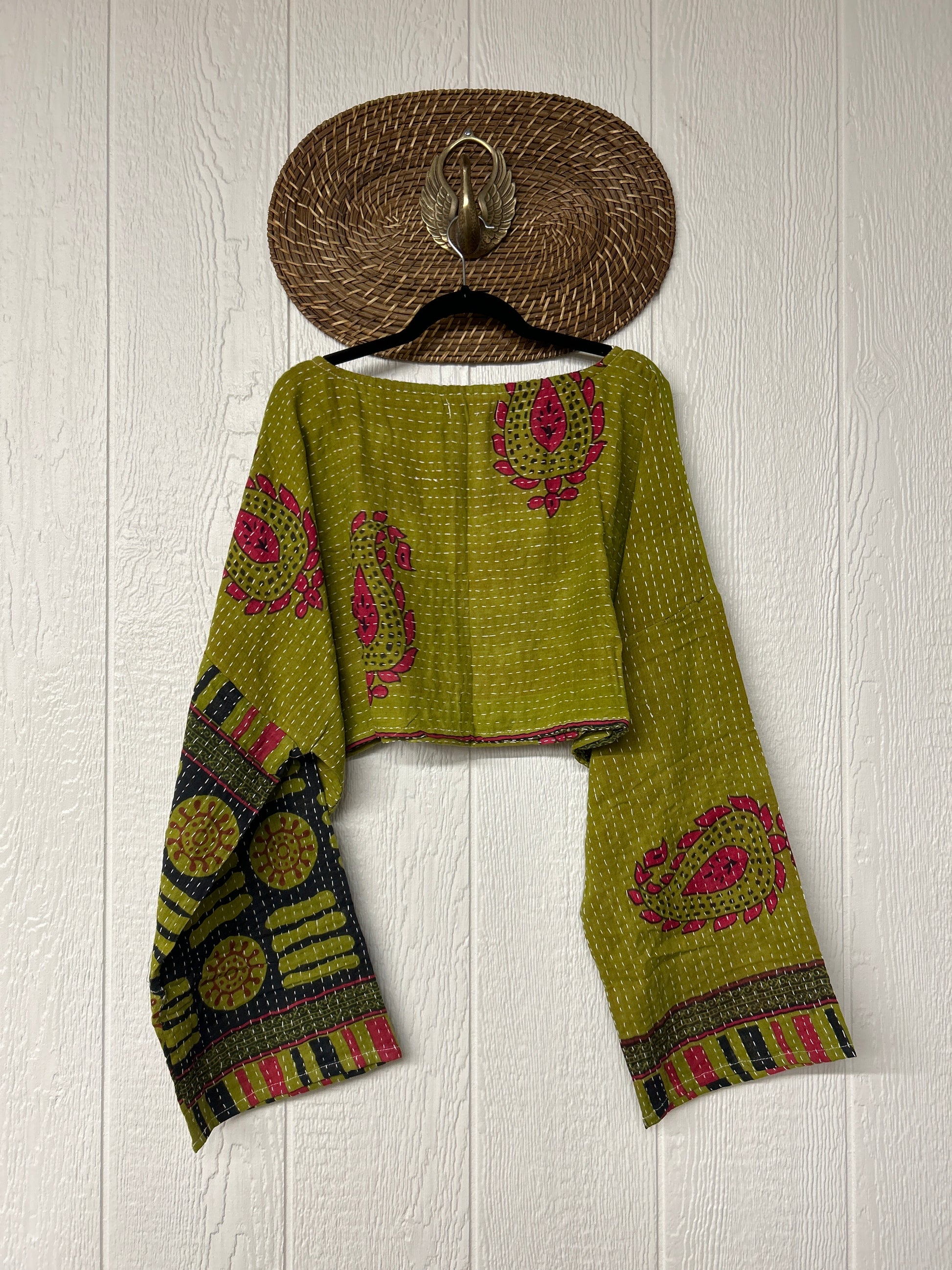 sari. Features long wide sleeves and a funky crop silhouette to wear with all your favorite KB bottoms.