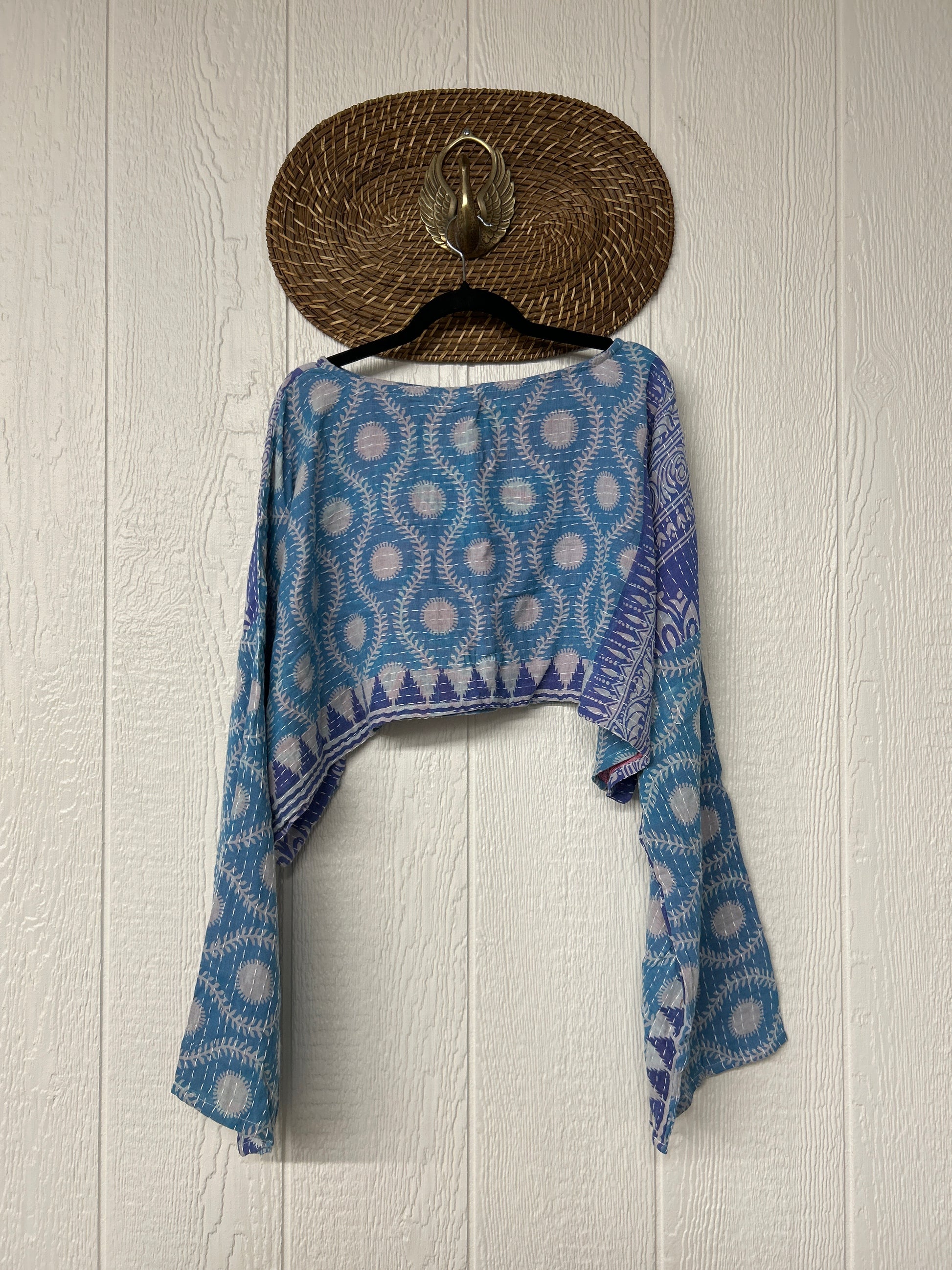 sari. Features long wide sleeves and a funky crop silhouette to wear with all your favorite KB bottoms.