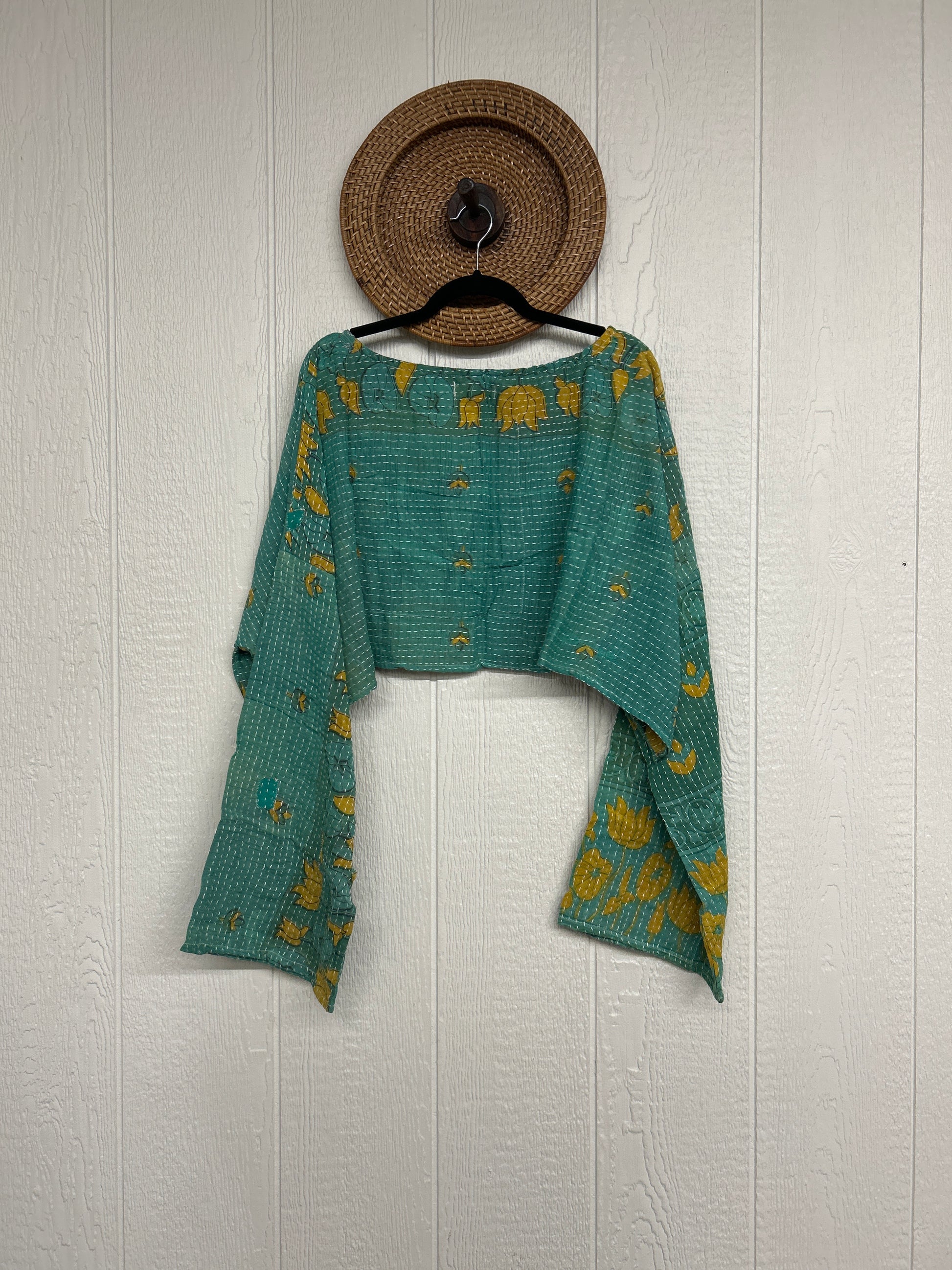 sari. Features long wide sleeves and a funky crop silhouette to wear with all your favorite KB bottoms.