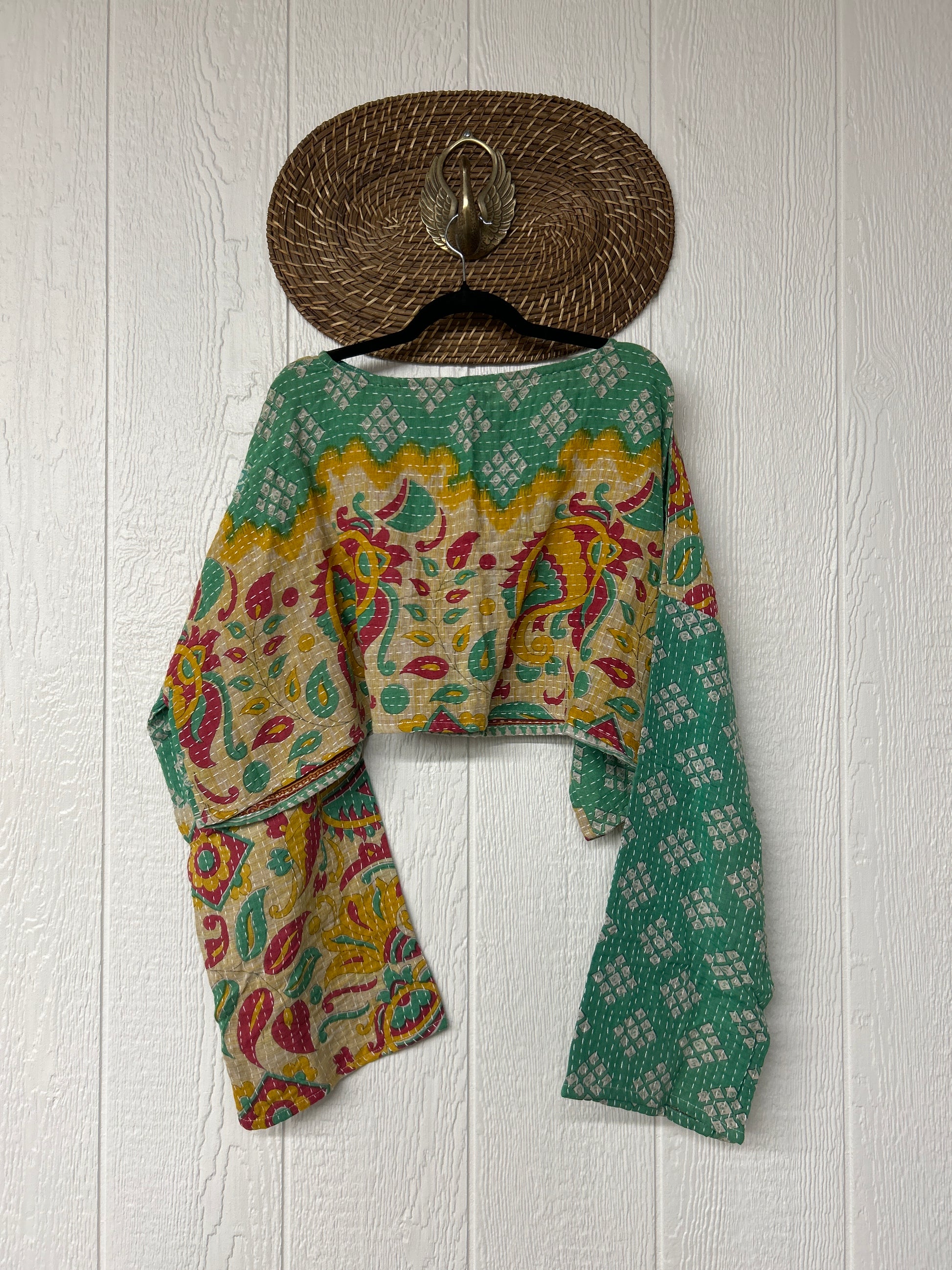 sari. Features long wide sleeves and a funky crop silhouette to wear with all your favorite KB bottoms.