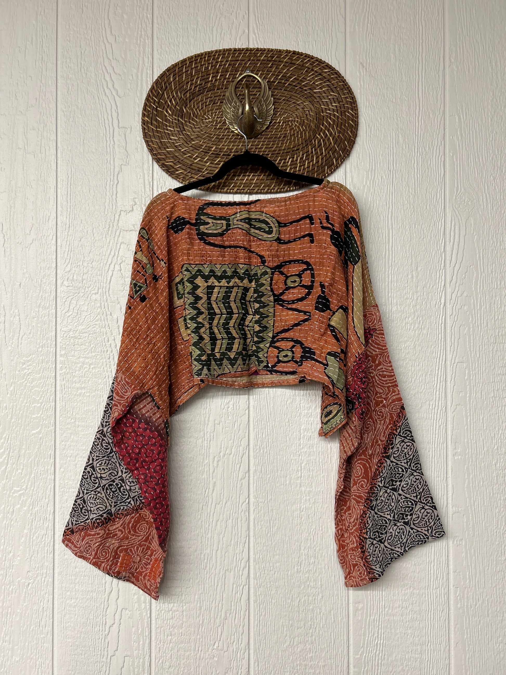 sari. Features long wide sleeves and a funky crop silhouette to wear with all your favorite KB bottoms.
