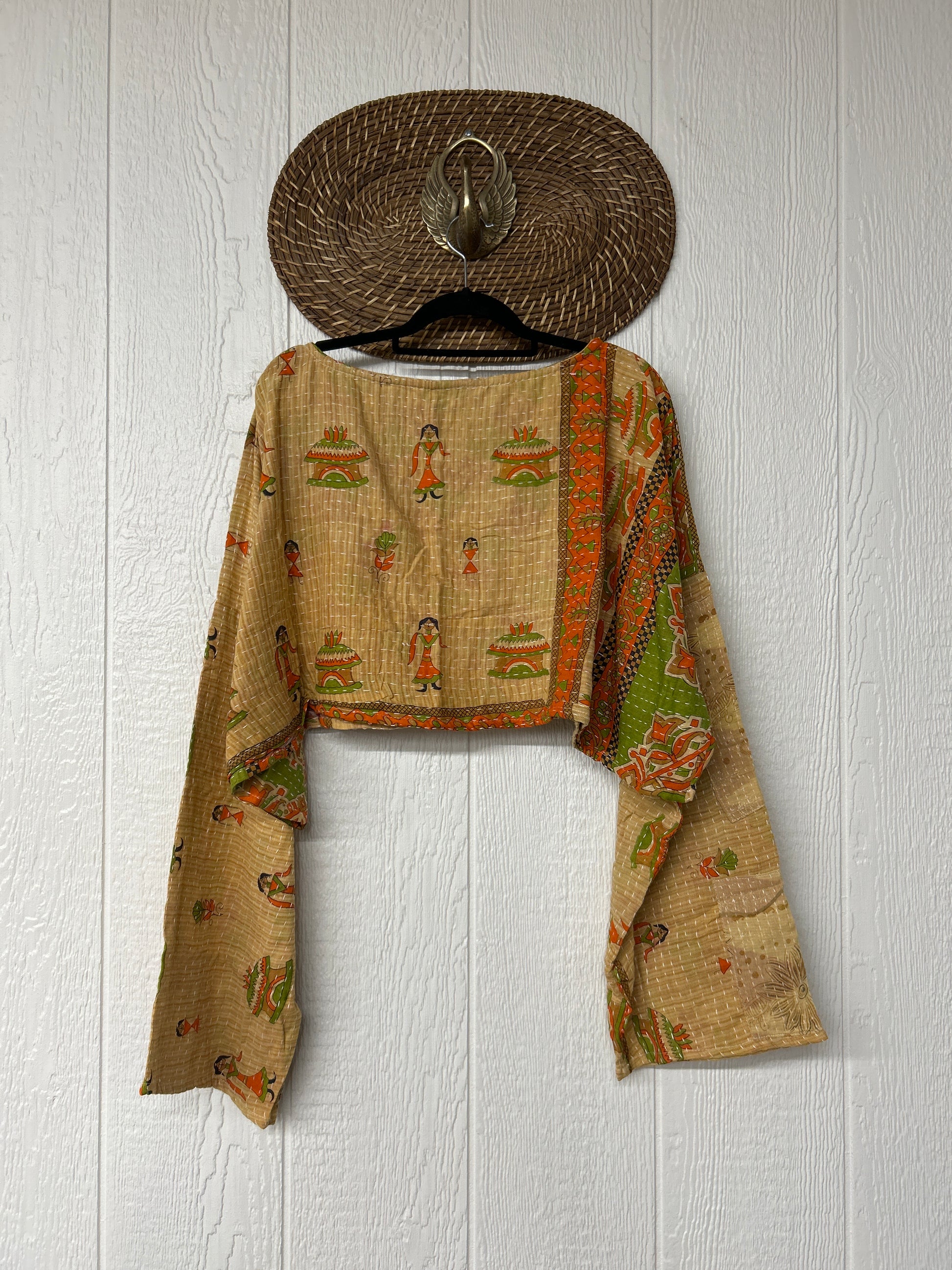sari. Features long wide sleeves and a funky crop silhouette to wear with all your favorite KB bottoms.