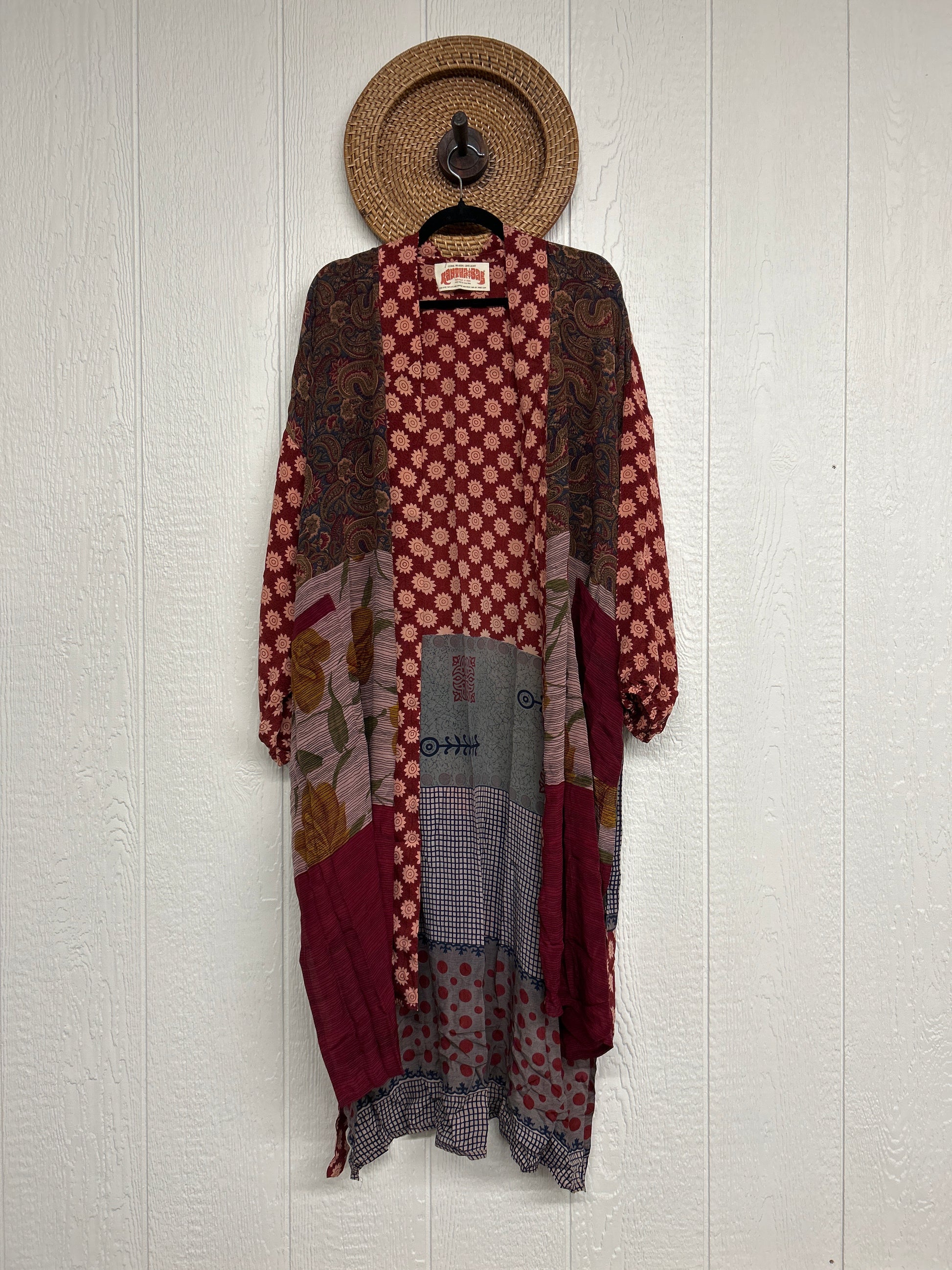 Crepe Dusters are beautiful, flowy, midi-length kimonos made from our ultra lux vintage crepe sari. They feature balloon sleeves with elastic at the wrist, 2 slouchy pockets, and a sash. They are one of our favorite layering pieces EVER.