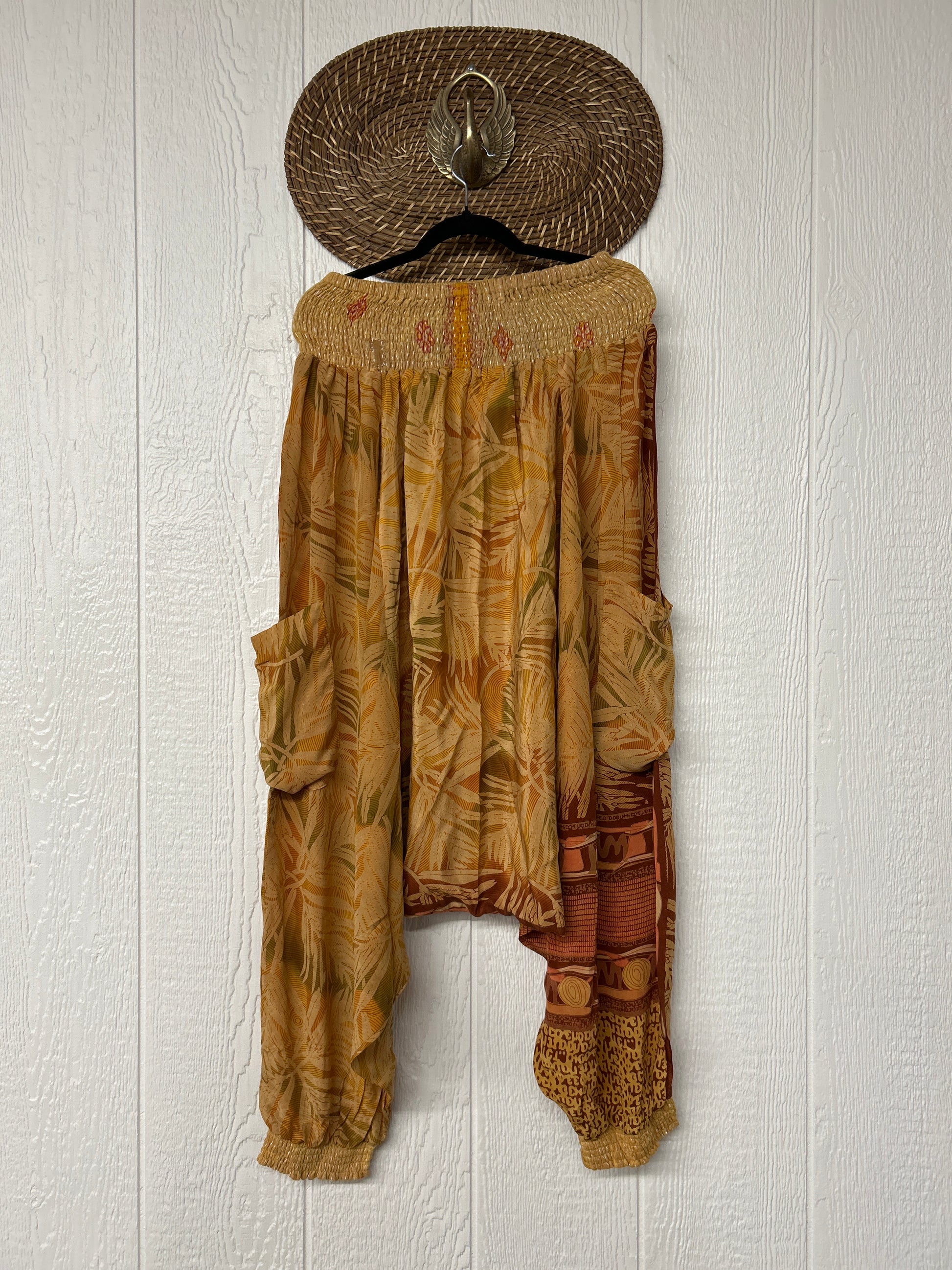 Made from vintage crepe sari, these are perfectly slouchy with a low harem drop for that effortless, flowy feel. Featuring deep side pockets, kantha stretch at the ankles, and a kantha smocked waistband that feels smooth and soft on the skin.