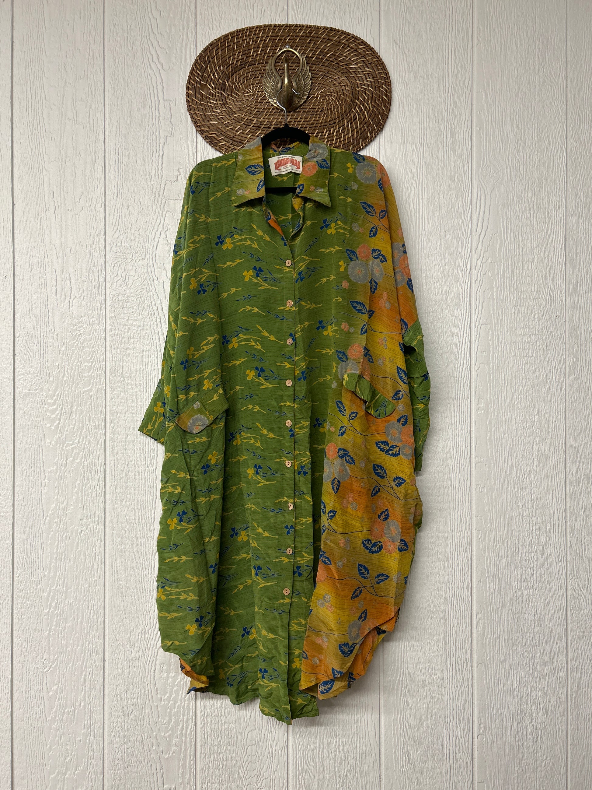 Made from our vintage crepe sari, this billowy dream functional buttons, two deep pockets in the front, dreamy longsleeves and a curved bottom.