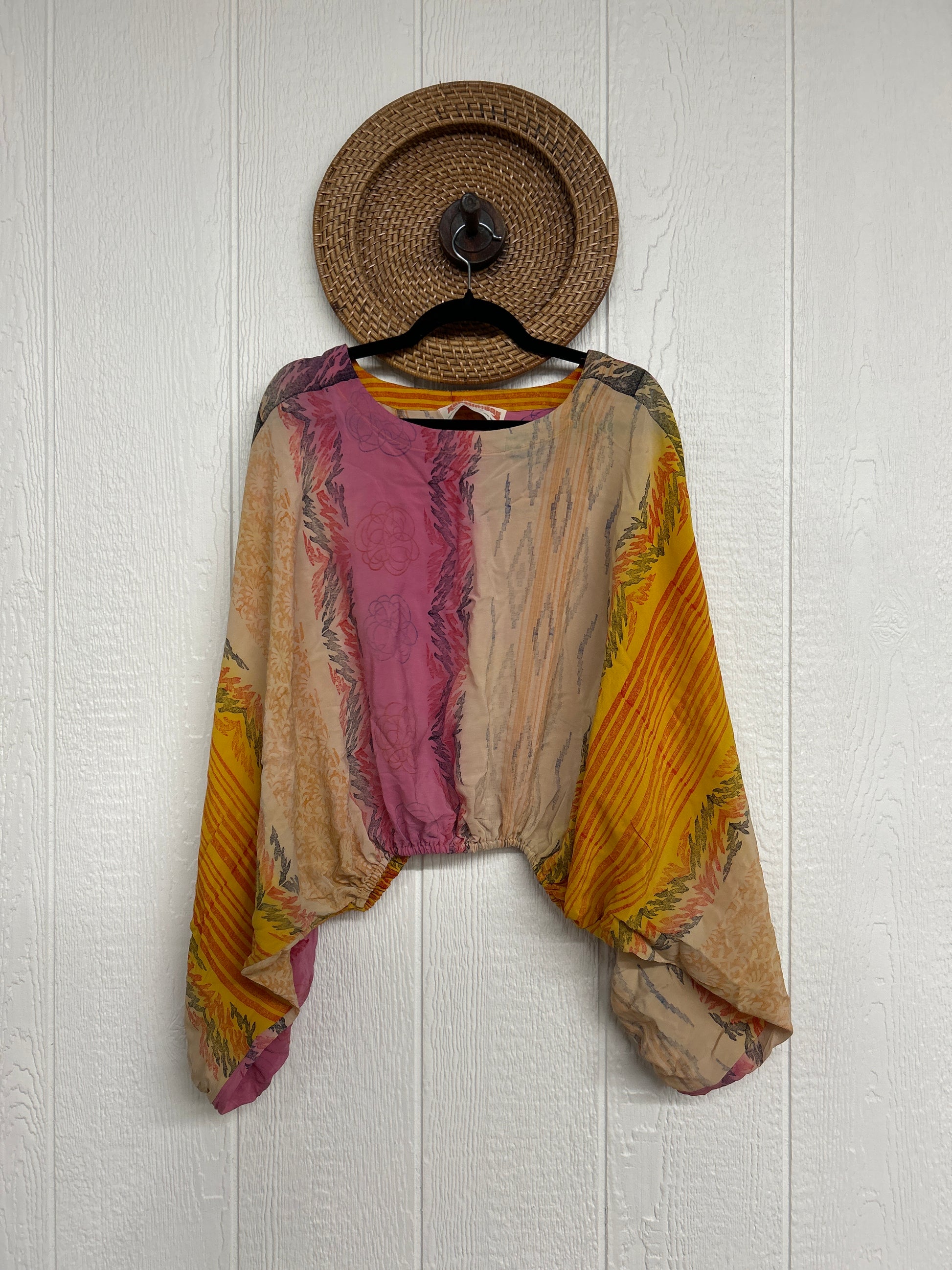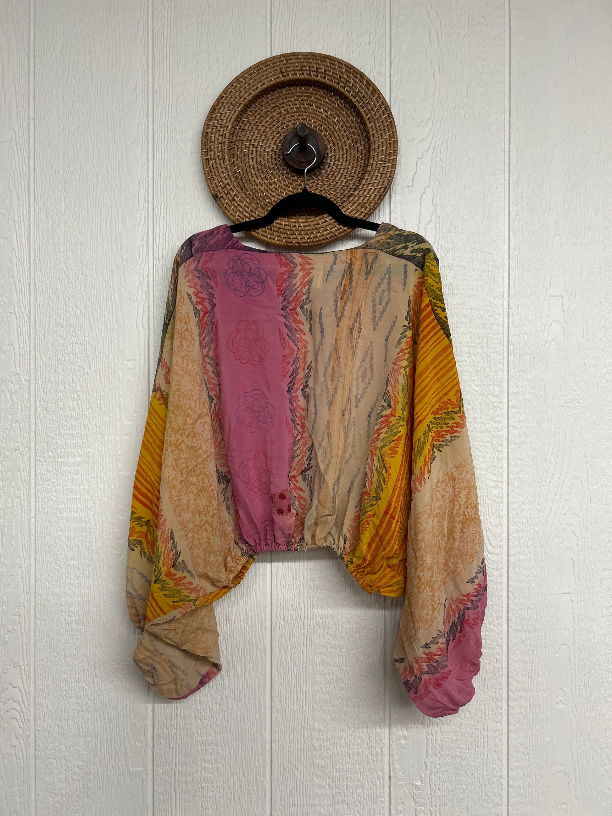 Disclosure: Our vintage styles have lived a full life before becoming the designs in our shop. Fabrics may have small threads or holes in the layers. Color inconsistency or small stains may be present. The saris are sewn together and extend the life of each design.