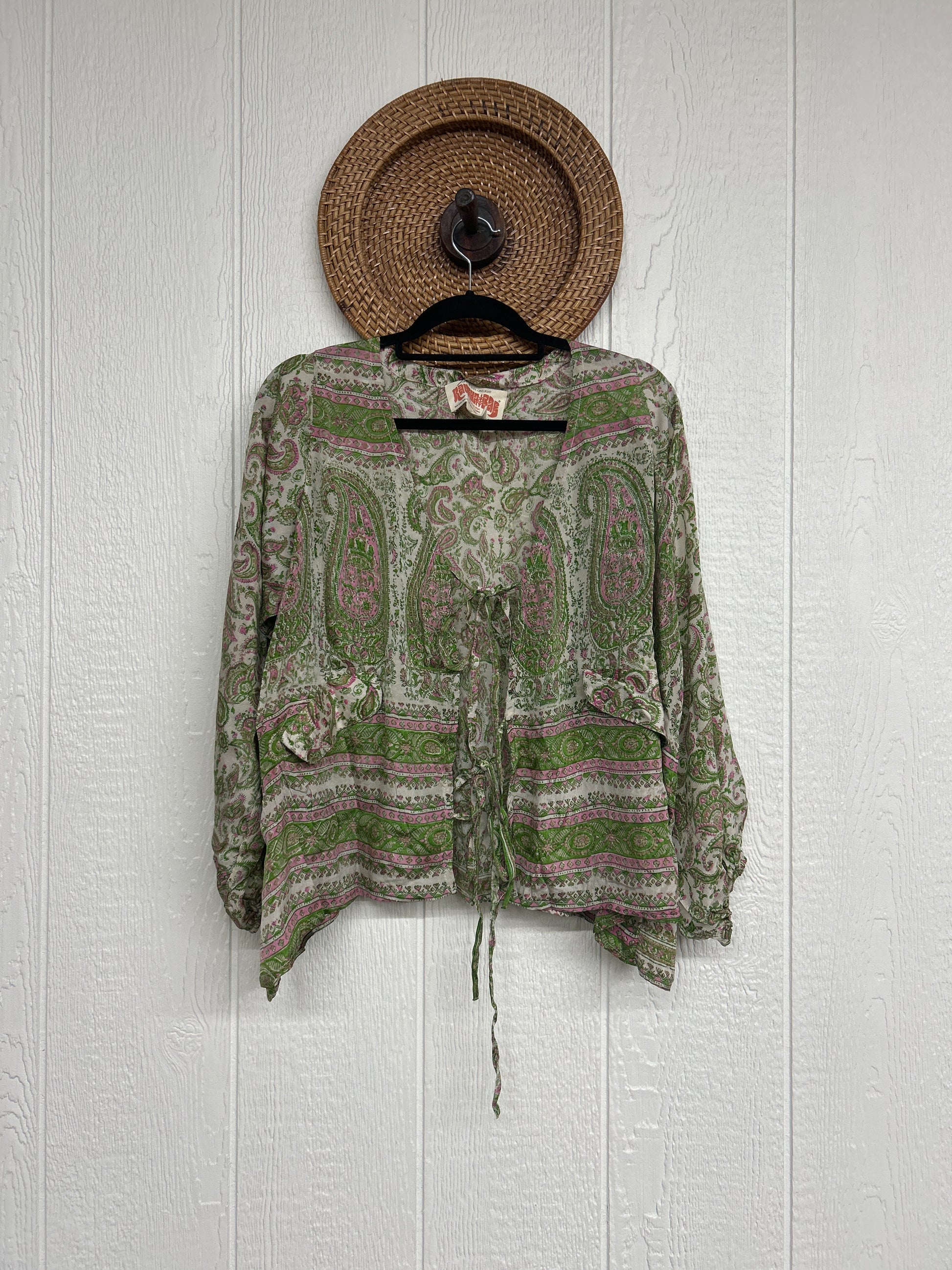 Disclosure: Our vintage styles have lived a full life before becoming the designs in our shop. Fabrics may have small threads or holes in the layers. Color inconsistency or small stains may be present. The saris are sewn together and extend the life of each design.