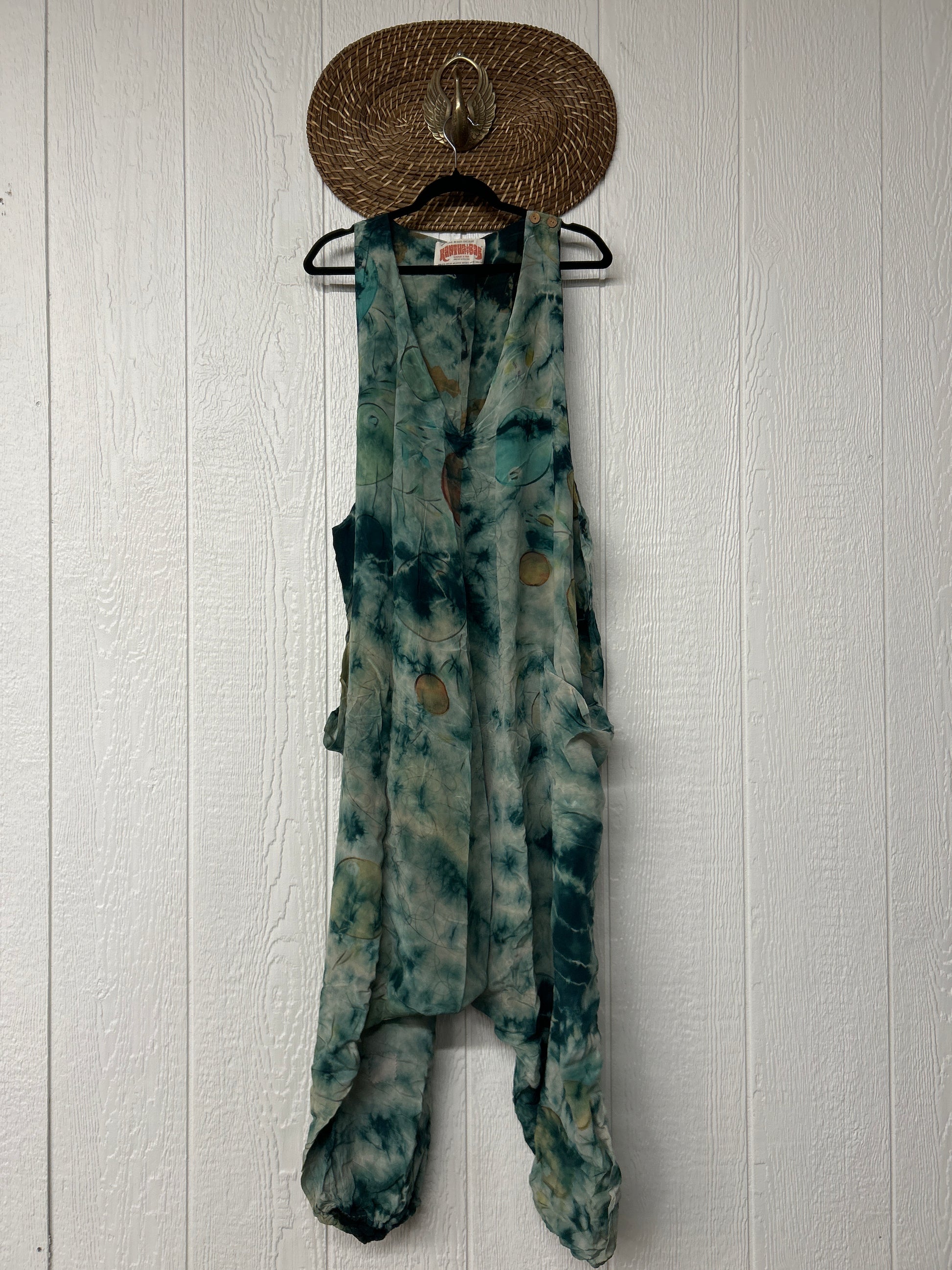 Crafted from our ultra lux vintage double crepe sari, this floaty wonder features a moderate drop couch, elastic at the legs, slouchy pockets