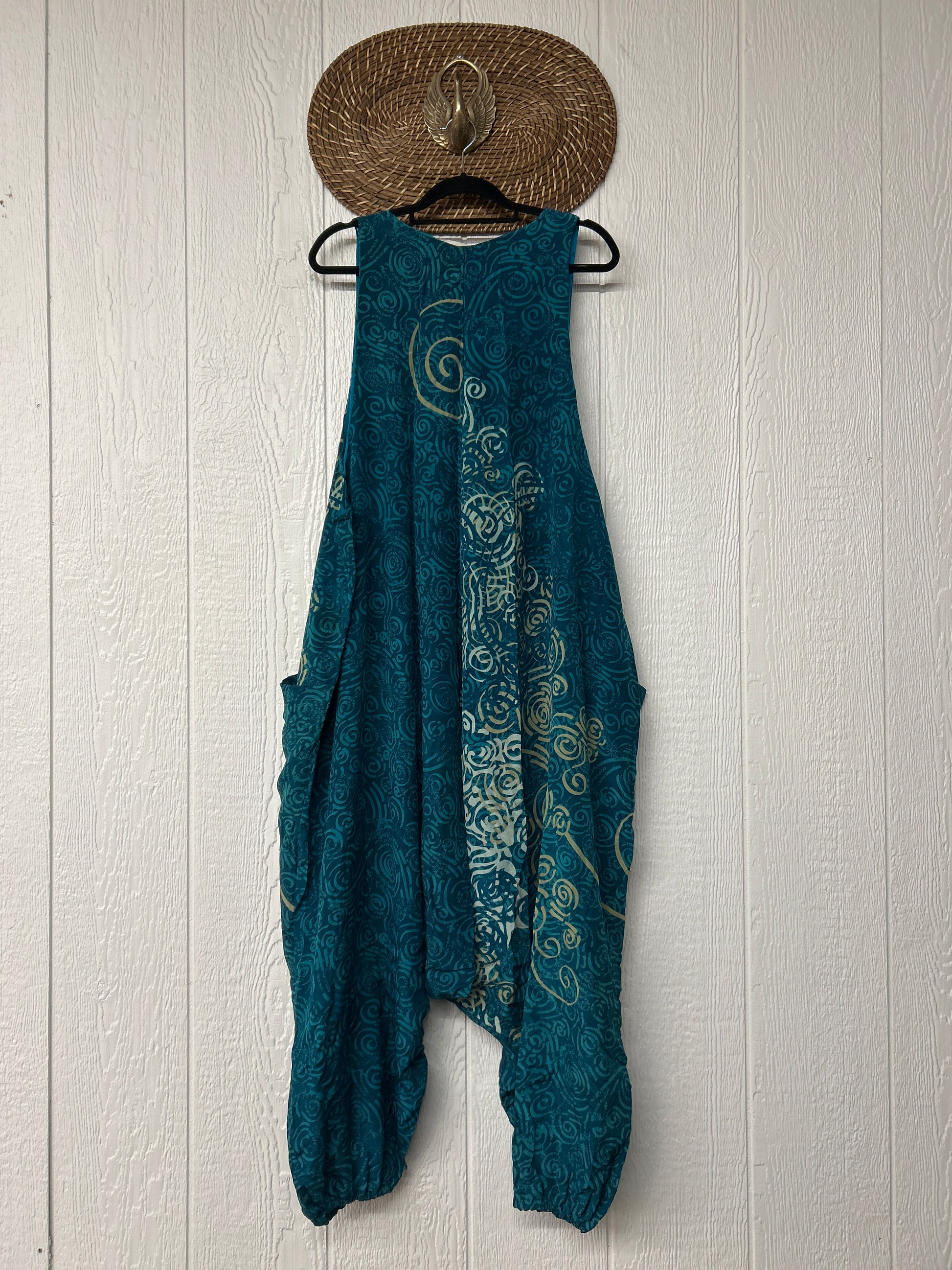 Crafted from our ultra lux vintage double crepe sari, this floaty wonder features a moderate drop couch, elastic at the legs, slouchy pockets