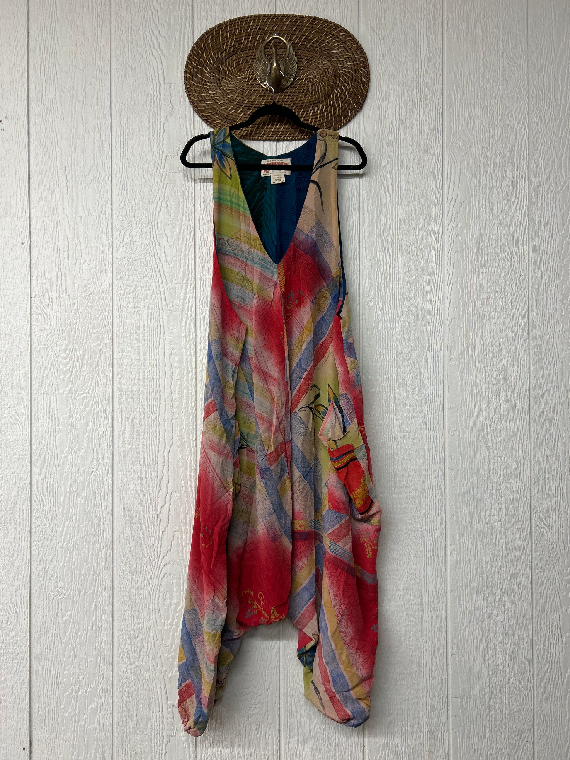 Crafted from our ultra lux vintage double crepe sari, this floaty wonder features a moderate drop couch, elastic at the legs, slouchy pockets