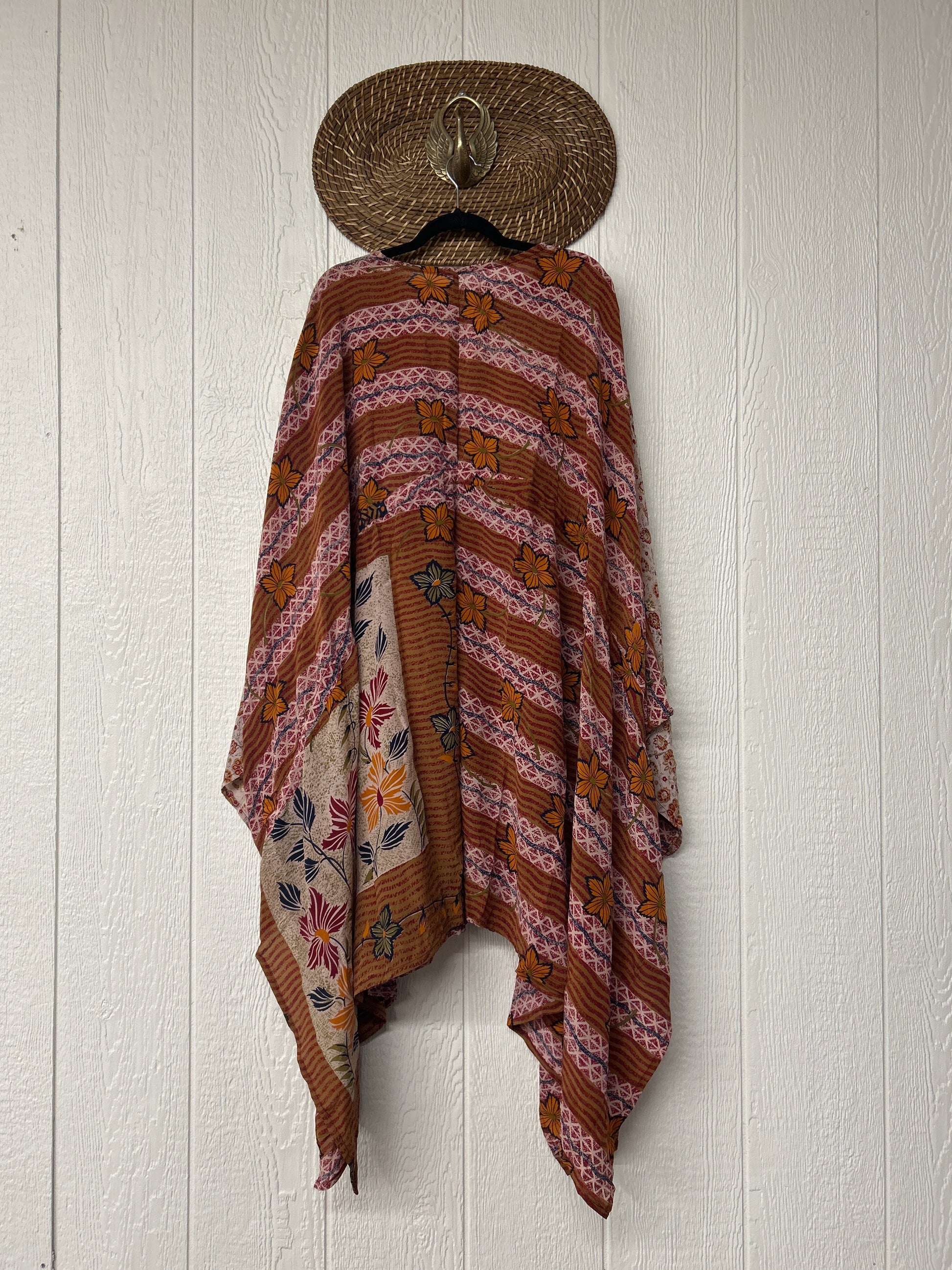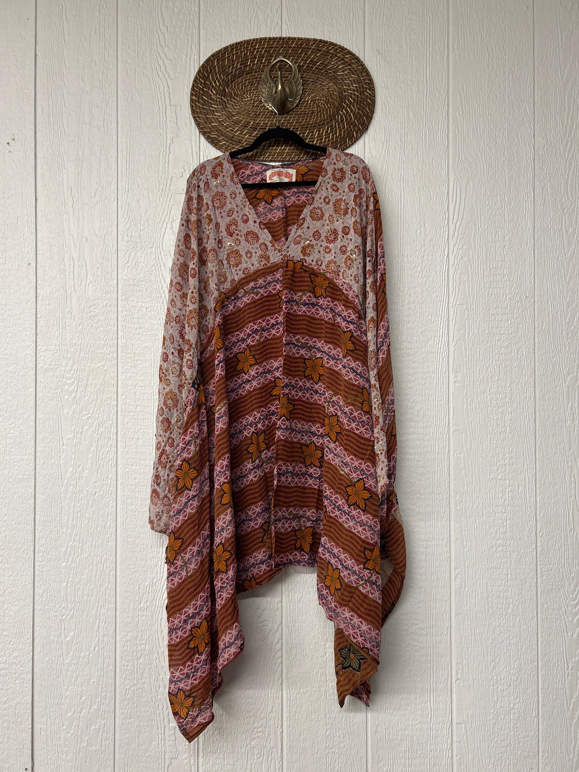 Fabrics may have small threads or holes in the layers. Color inconsistency or small stains may be present. The saris are sewn together and extend the life of each design.
