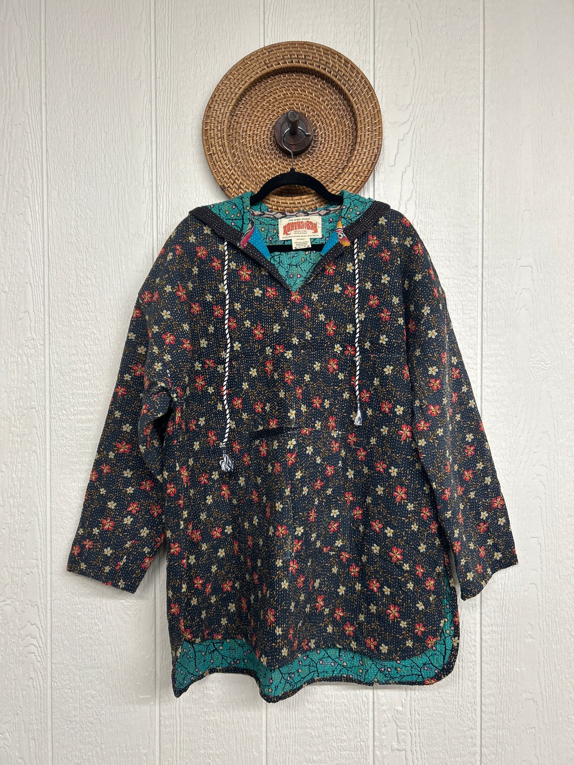 Made from our ultra lux fine Kantha stitch cotton sari these hoodies feature