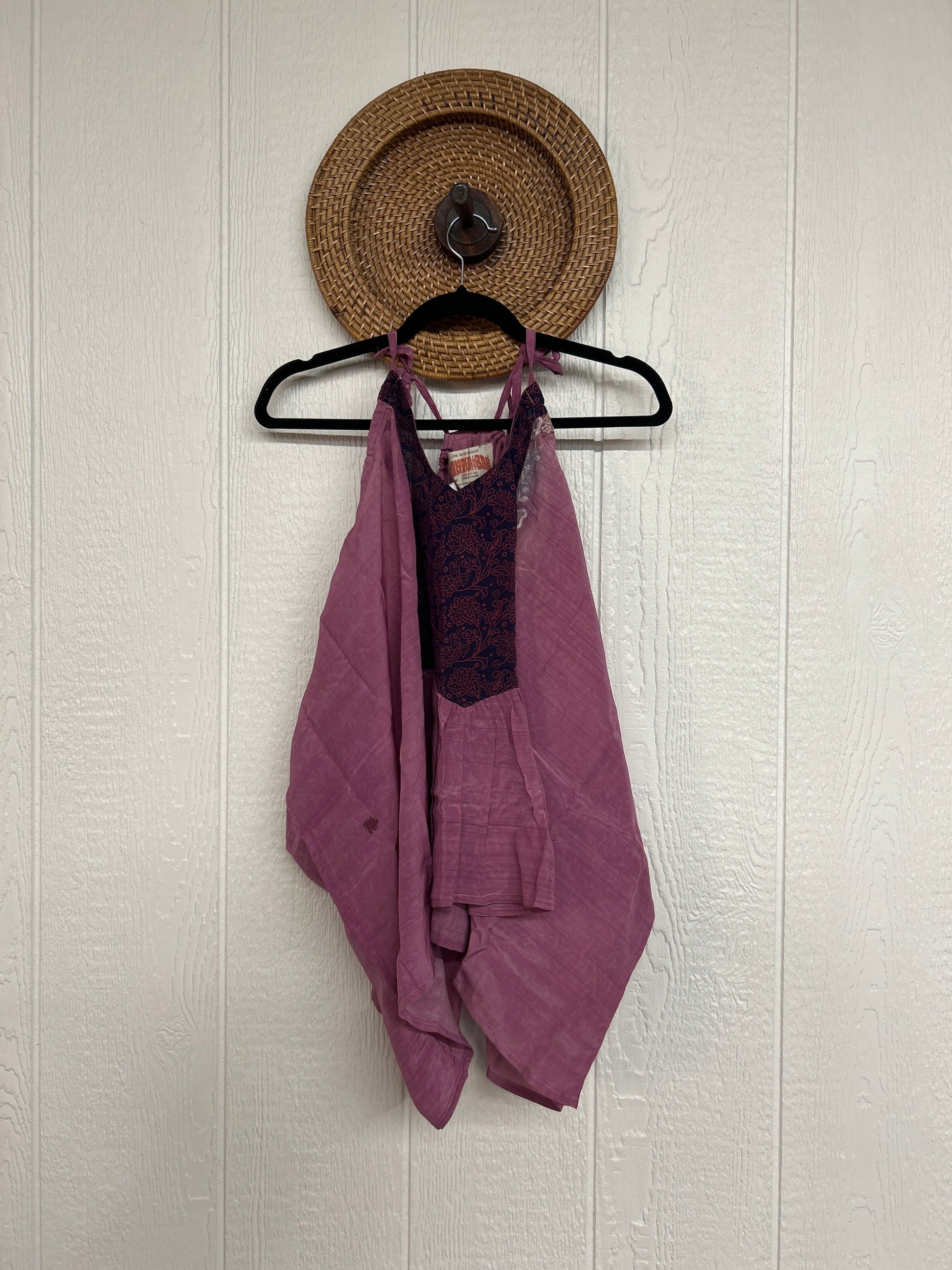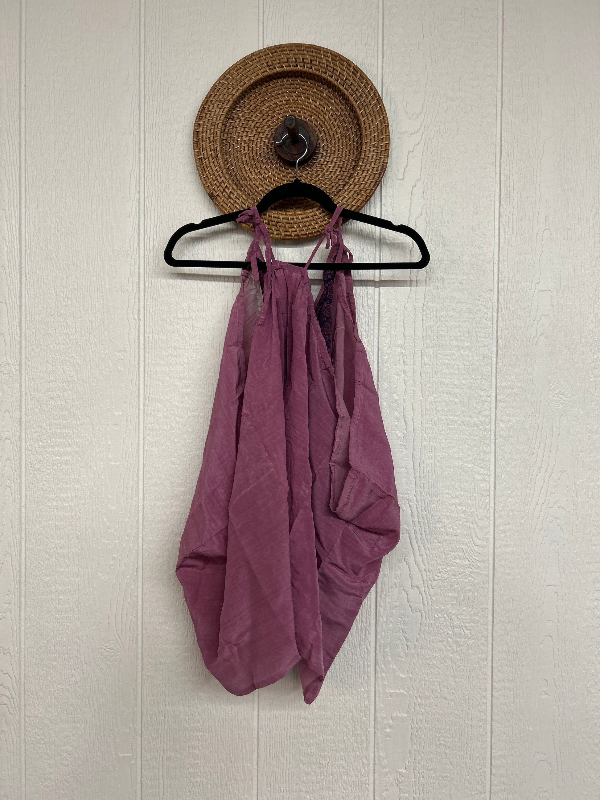 The perfect layering piece made from vintage crepe silk sari. Features tie straps that also cinch for customization.
