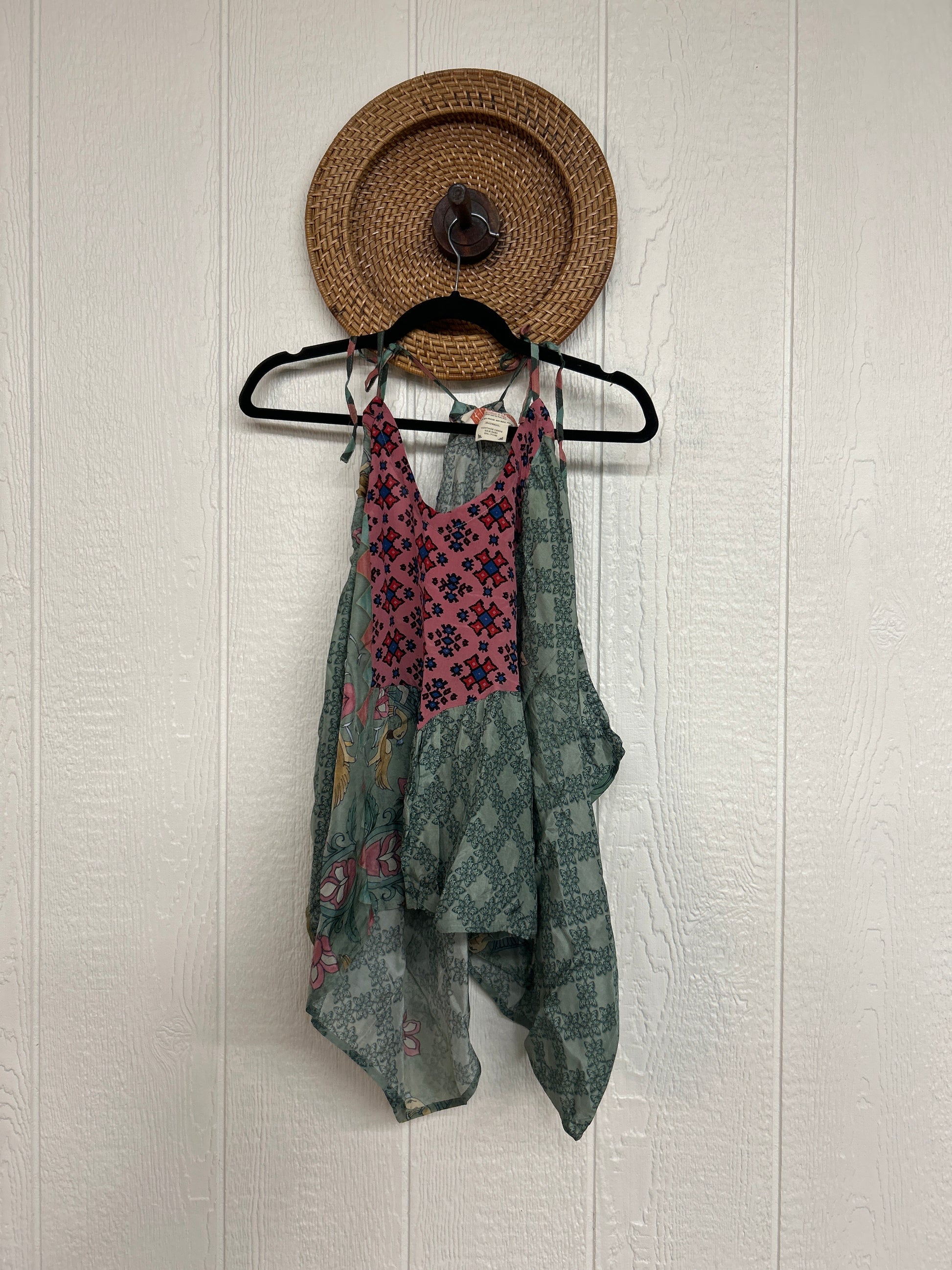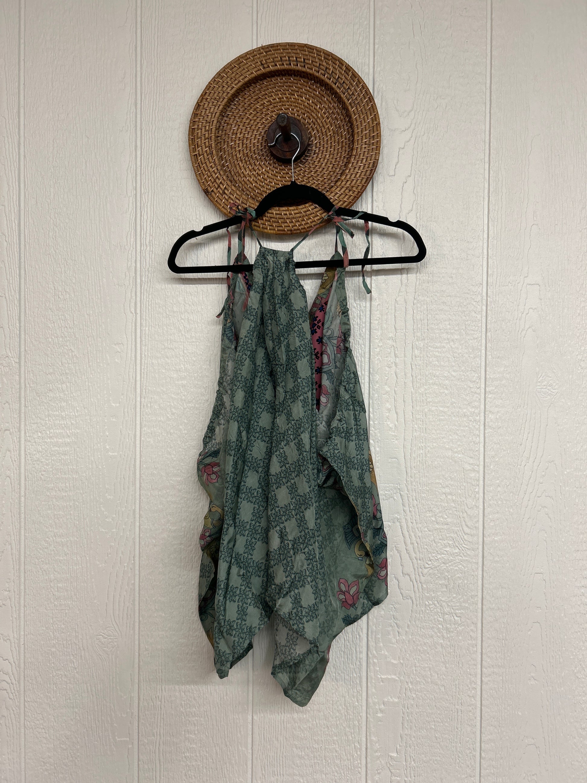 The perfect layering piece made from vintage crepe silk sari. Features tie straps that also cinch for customization.