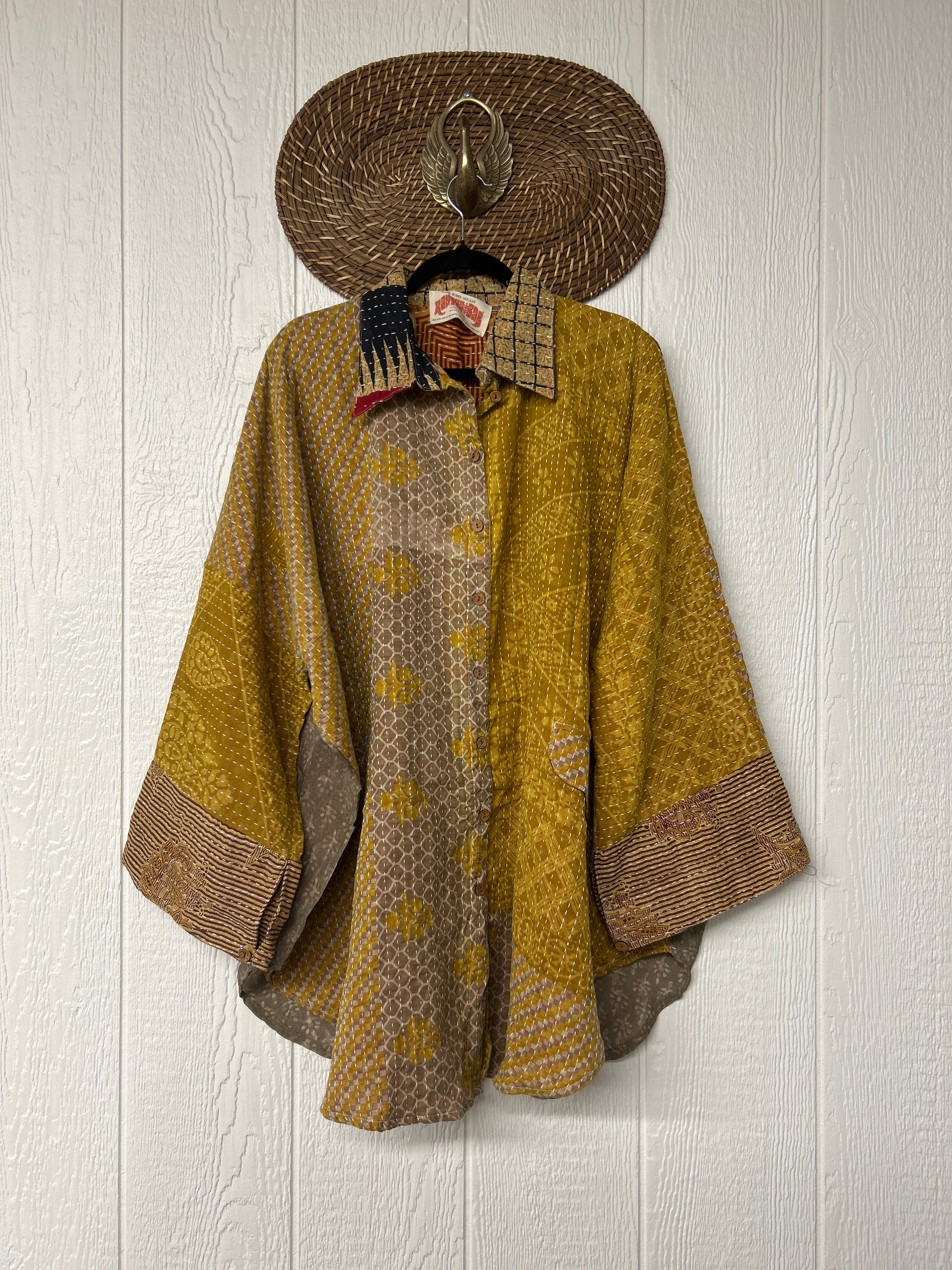 Made from our vintage cotton embroidered sari this billowy dream features a crepe panel in the back, functional buttons, two deep pockets in the front and a curved bottom.