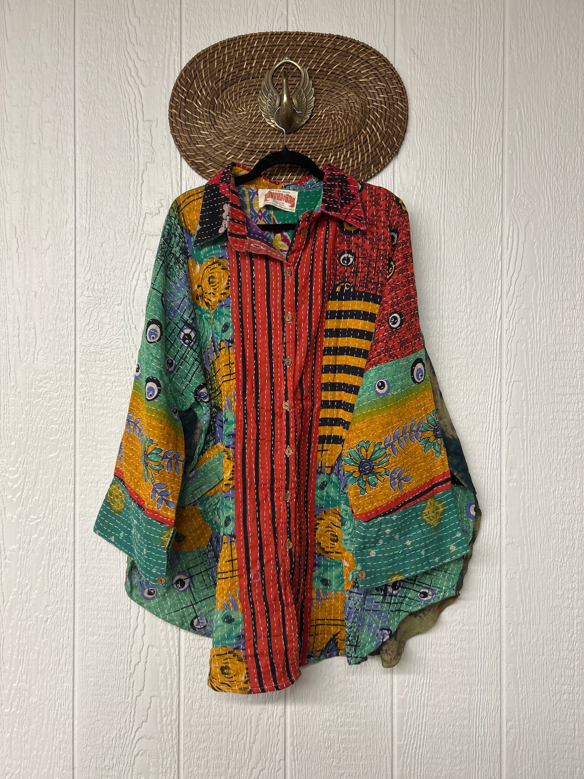 Disclosure: Our vintage styles have lived a full life before becoming the designs in our shop. Fabrics may have small threads or holes in the layers. Color inconsistency or small stains may be present.