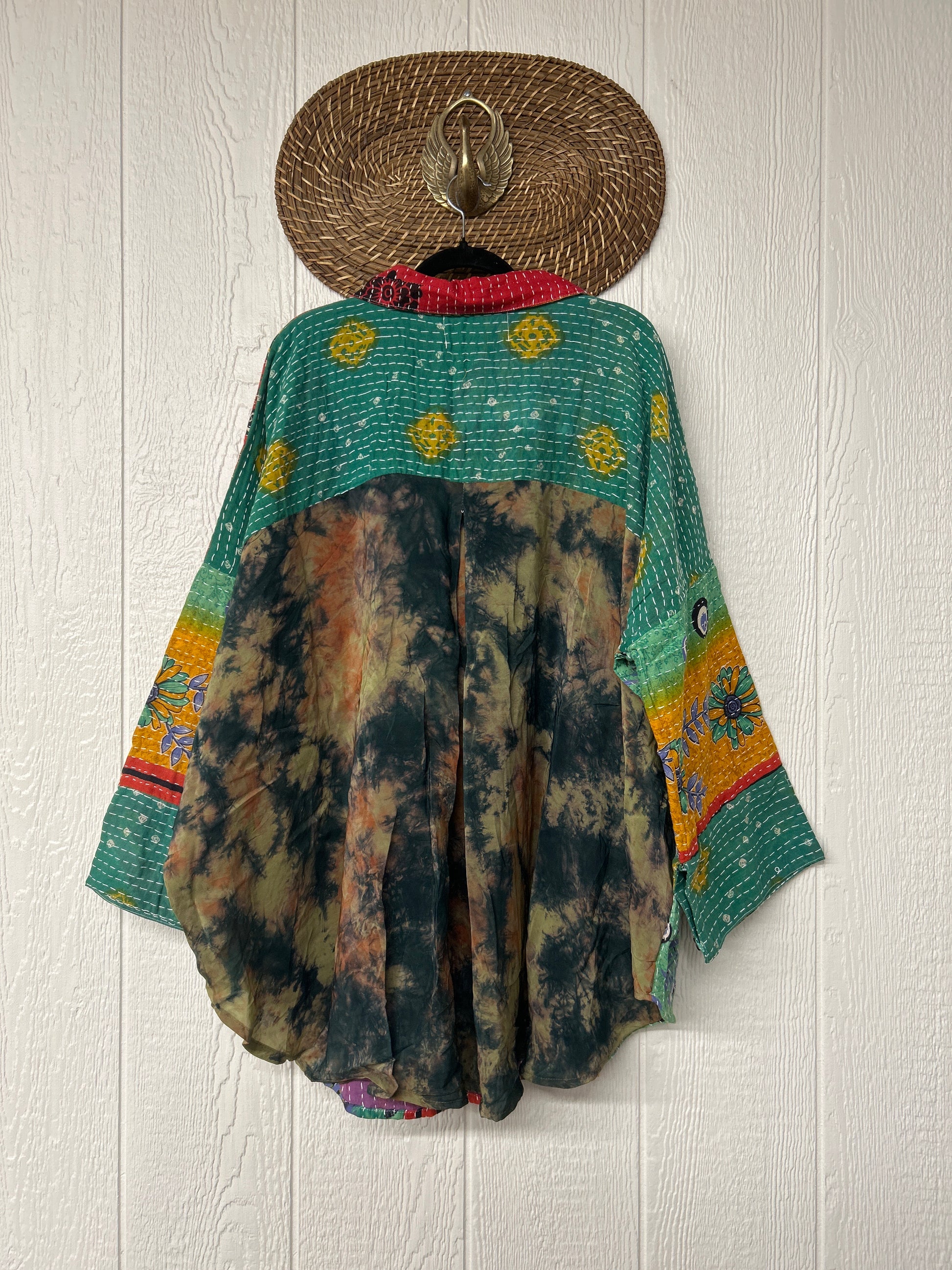Made from our vintage cotton embroidered sari this billowy dream features a crepe panel in the back, functional buttons, two deep pockets in the front and a curved bottom.