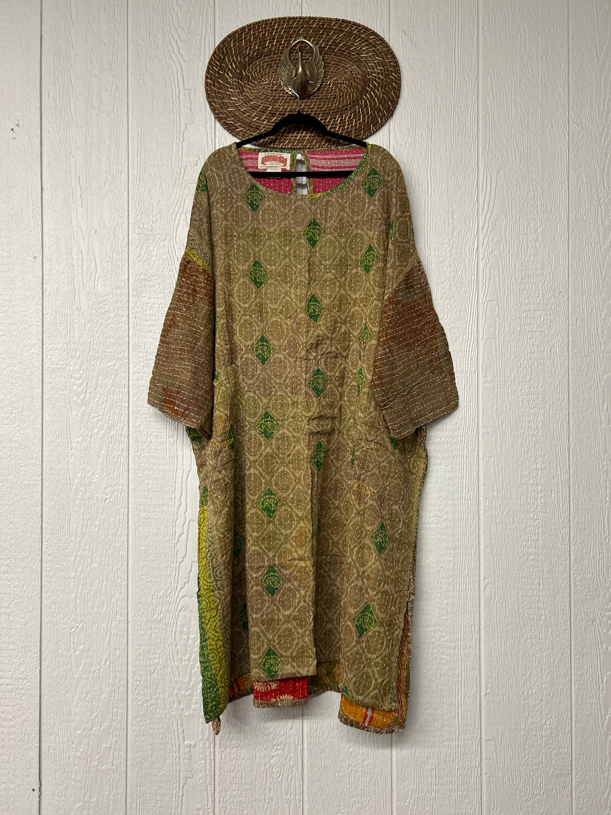 Crafted from our ultra lux vintage cotton kantha stitched sari this tunic is based on our best selling dream line pullover as a maxi!