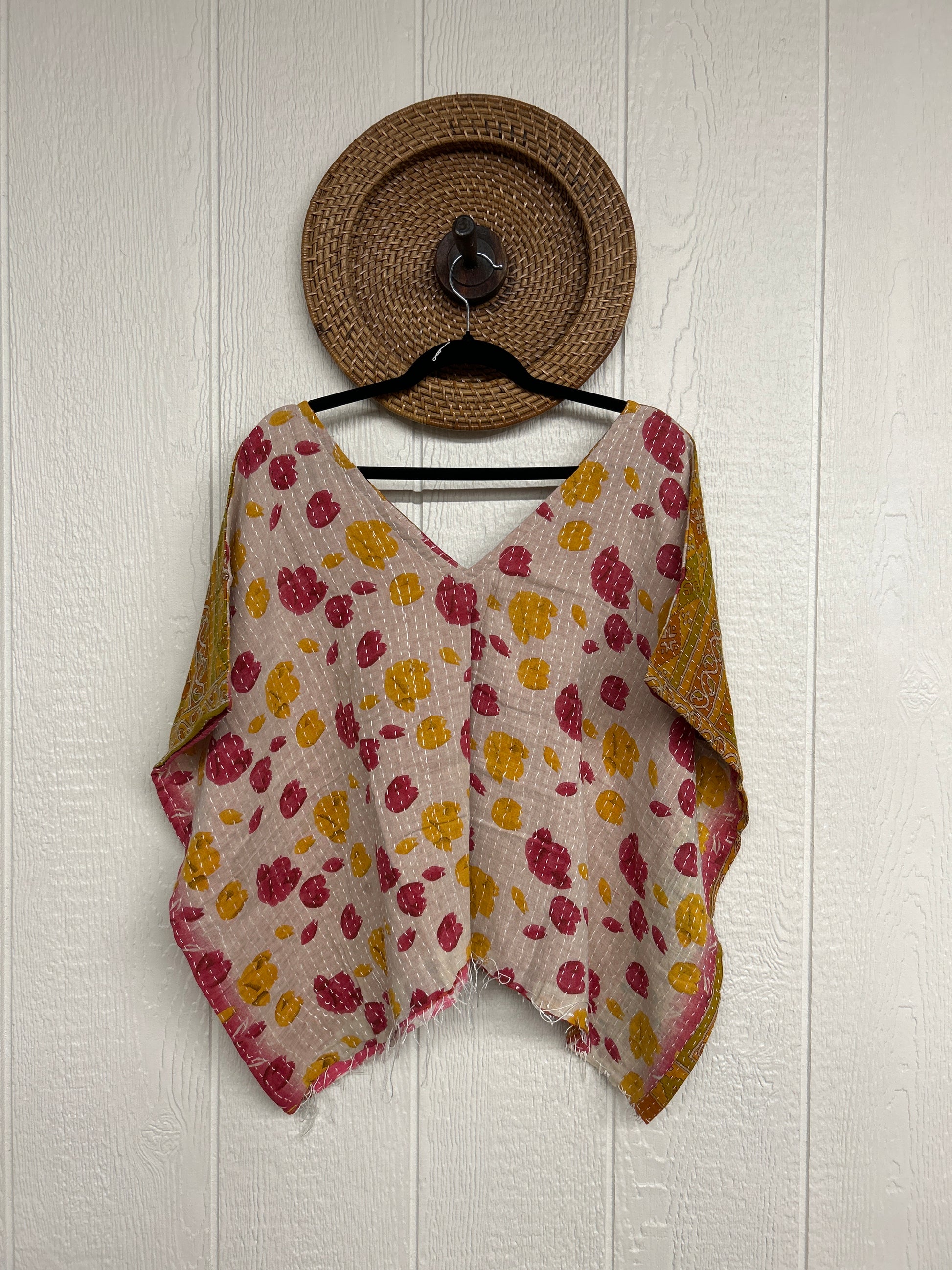 Crafted from kantha stitched vintage cotton sari our OG V Crop is slouchy perfection. Fully reversible PLUS you can wear it on ALL four sides. Features an unfinished fringe hem for extra vibes. We know the OG V Crop will be your new go to!
