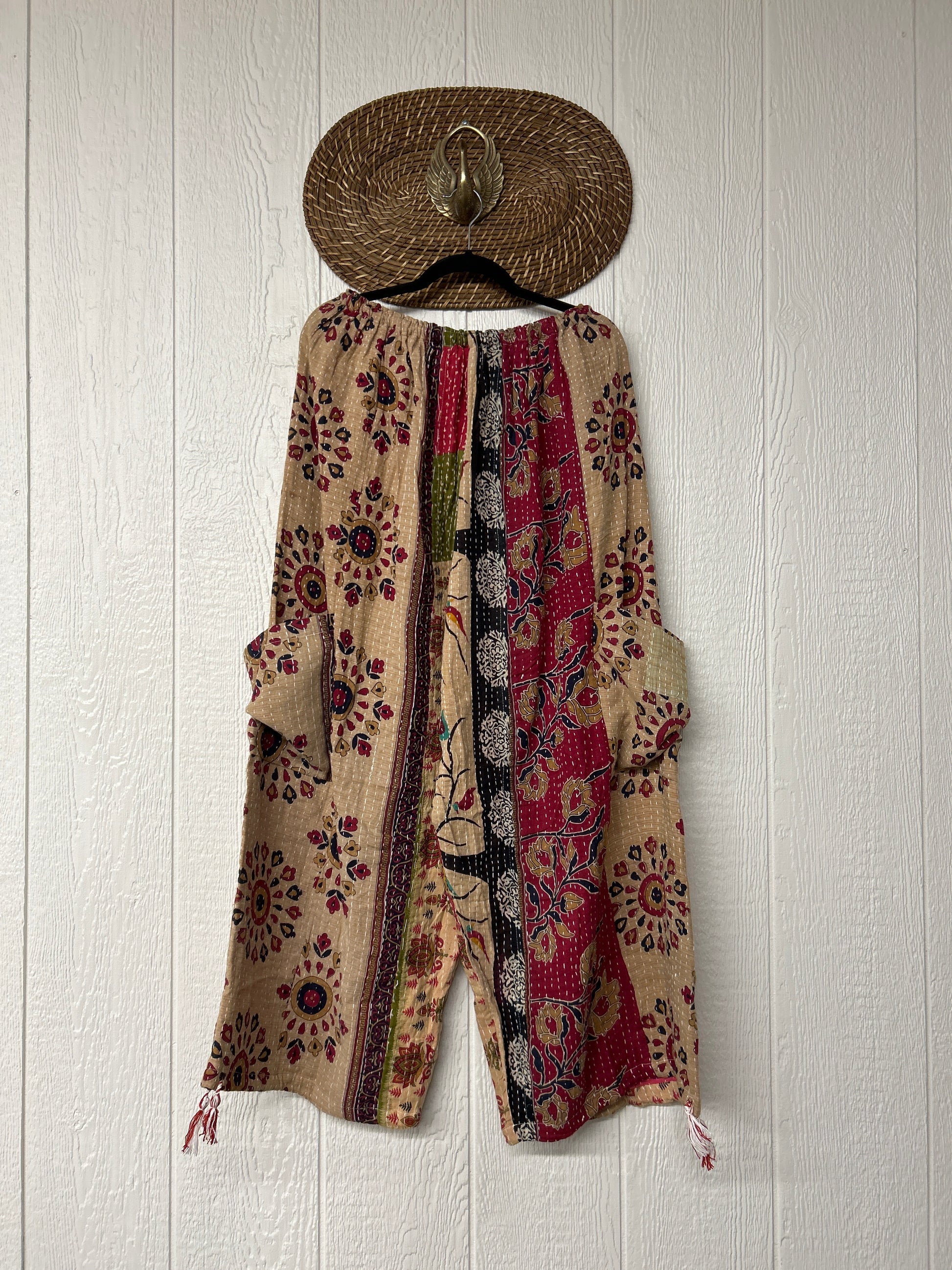 Made from our hand kantha stitched vintage cotton sari, the Karma Cargo Pants features super wide legs with deep side pockets and interior pockets.