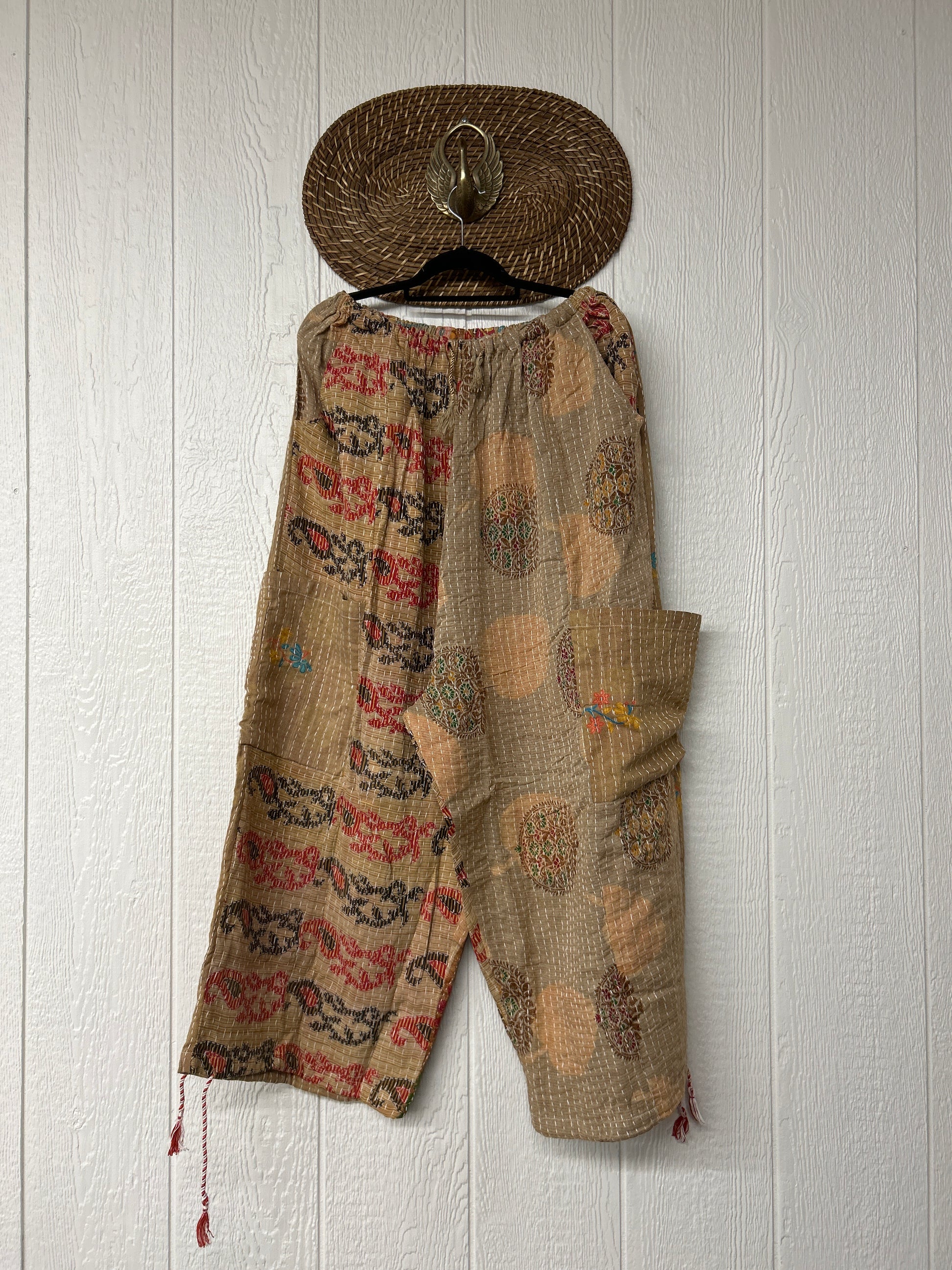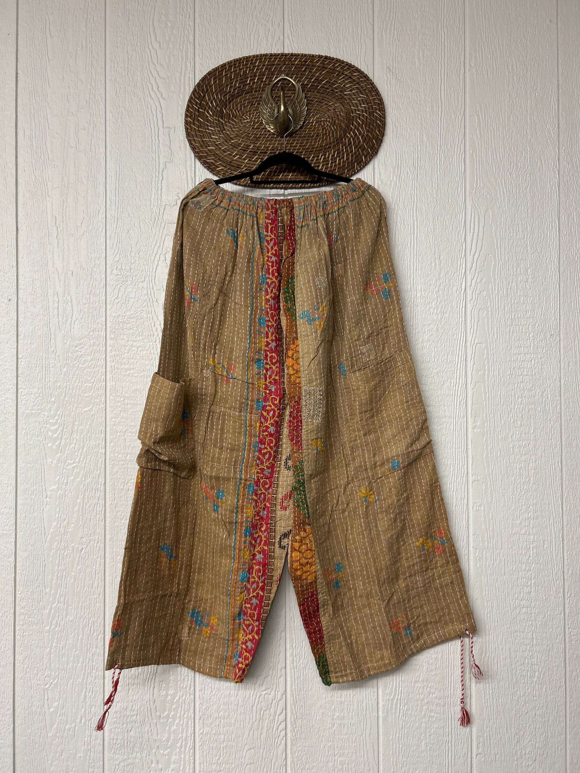 Made from our hand kantha stitched vintage cotton sari, the Karma Cargo Pants features super wide legs with deep side pockets and interior pockets.