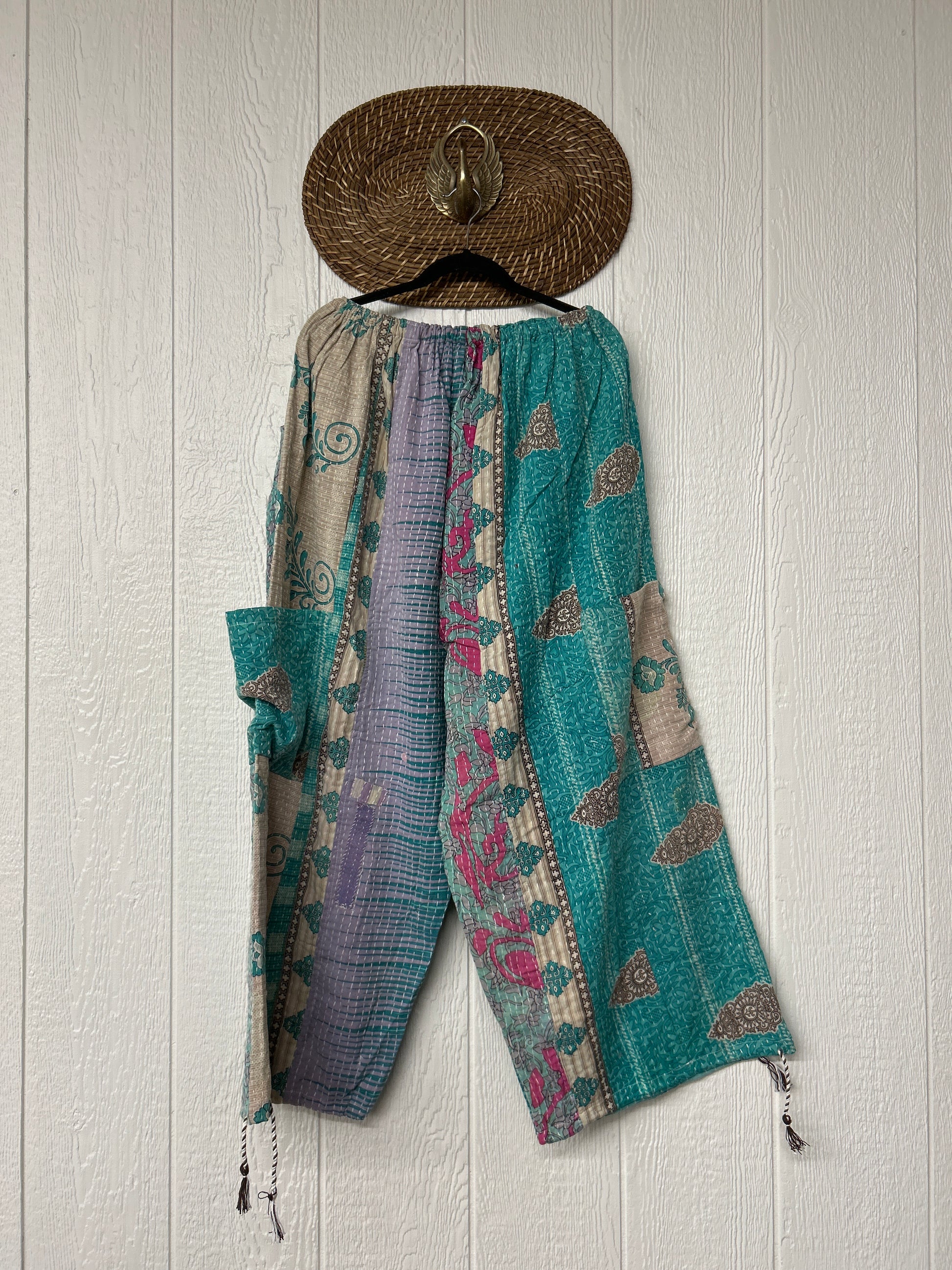 Made from our hand kantha stitched vintage cotton sari, the Karma Cargo Pants features super wide legs with deep side pockets and interior pockets.