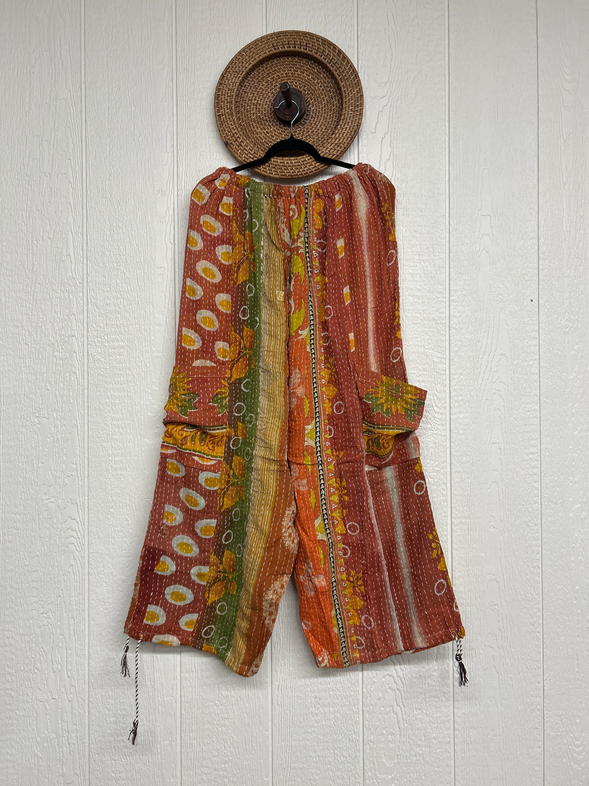 Made from our hand kantha stitched vintage cotton sari, the Karma Cargo Pants features super wide legs with deep side pockets and interior pockets.