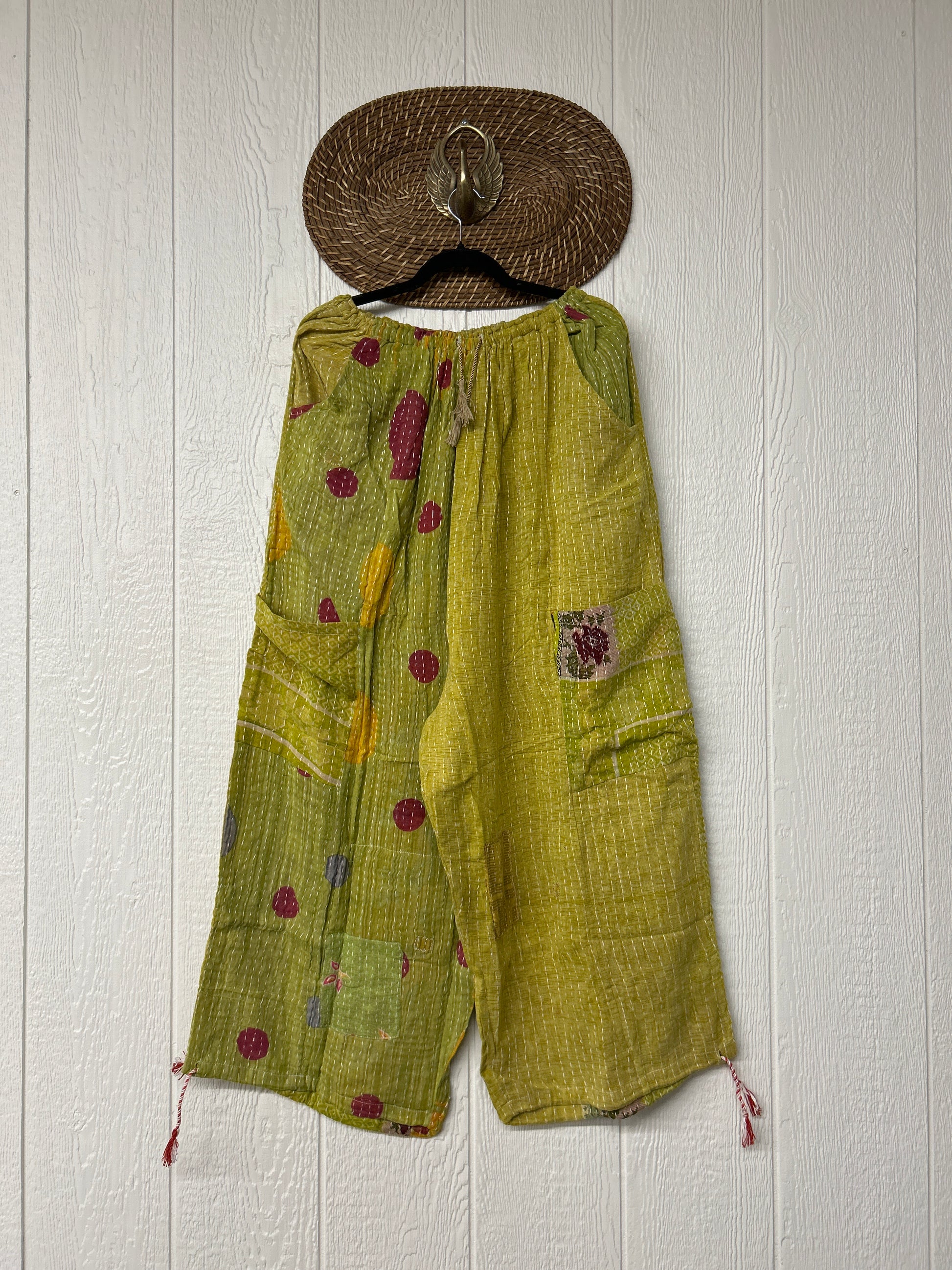 Made from our hand kantha stitched vintage cotton sari, the Karma Cargo Pants features super wide legs with deep side pockets and interior pockets.